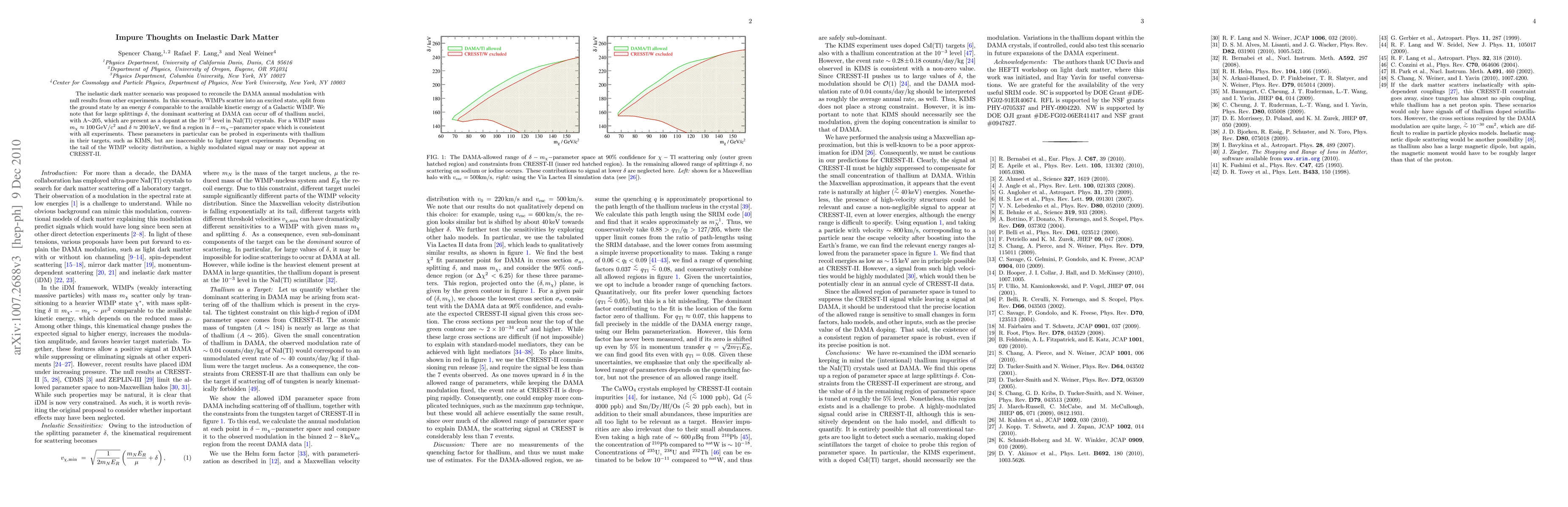 Researchers investigate inelastic dark matter scenarios using thallium targets, finding a region of parameters consistent with all experiments, particularly those probing WIMP masses above 100 GeV.