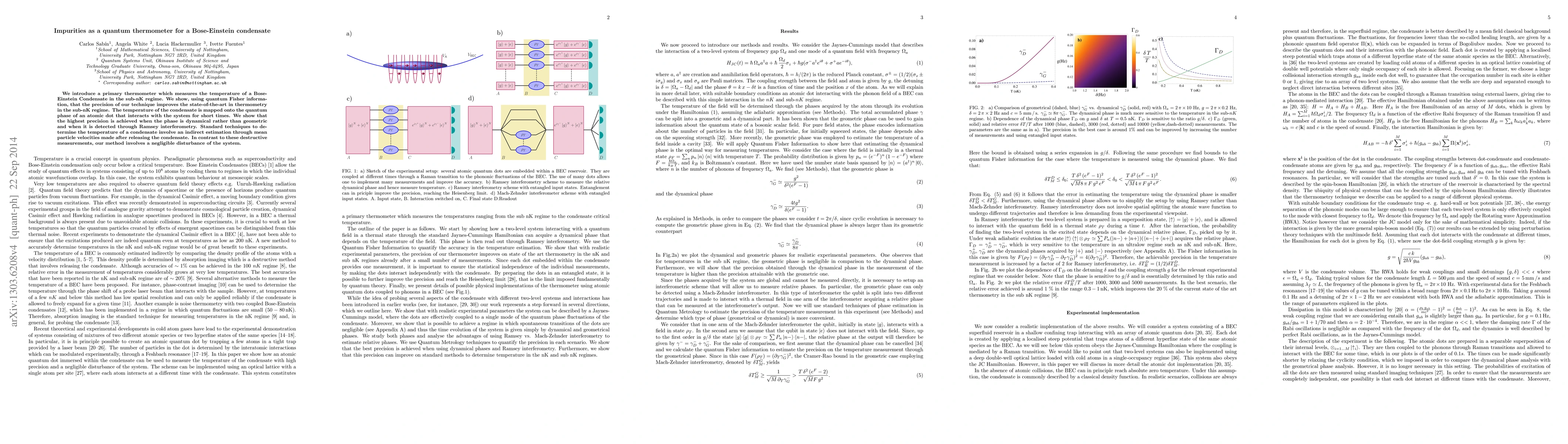 We introduce a primary thermometer which measures the temperature of a Bose-Einstein Condensate in the sub-nK regime. We show, using quantum Fisher information, that the precision of our technique improves the state-of-the-art in thermometry in the sub-nK regime. The temperature of the condensate is mapped onto the quantum phase of an atomic dot that interacts with the system for short times. We show that the highest precision is achieved when the phase is dynamical rather than geometric and when it is detected through Ramsey interferometry. Standard techniques to determine the temperature of a condensate involve an indirect estimation through mean particle velocities made after releasing the condensate. In contrast to these destructive measurements, our method involves a negligible disturbance of the system.