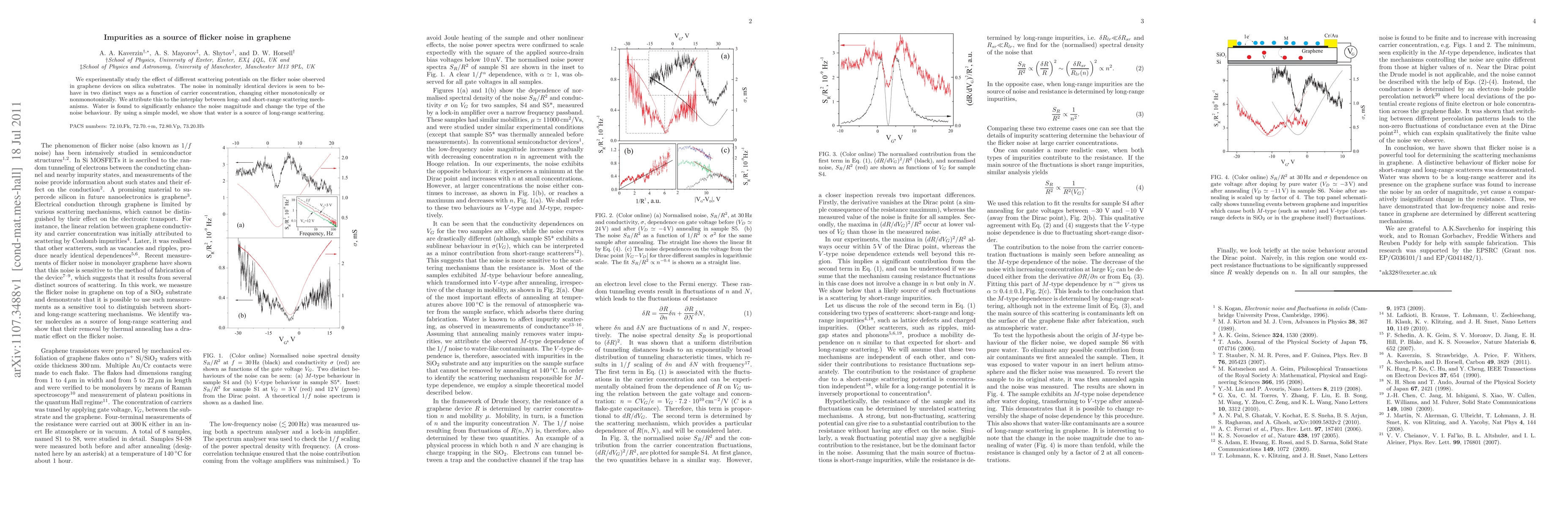 Researchers study graphene devices on silica substrates to understand how impurities affect flicker noise, finding that water significantly enhances noise magnitude and changes its behavior.
