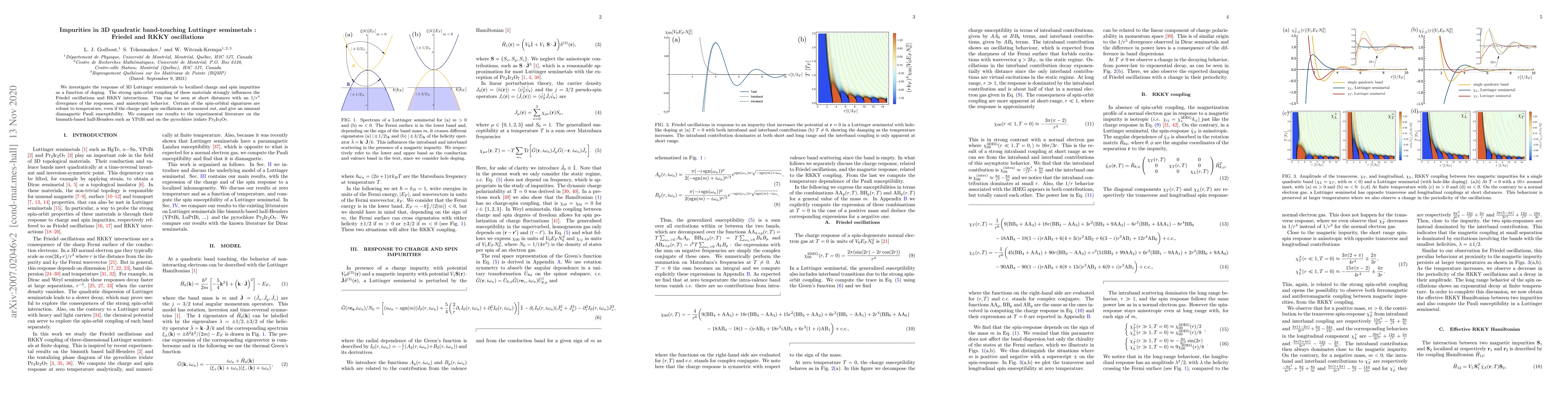 We investigate the response of 3D Luttinger semimetals to localized charge and spin impurities as a function of doping. The strong spin-orbit coupling of these materials strongly influences the Friedel oscillations and RKKY interactions. This can be seen at short distances with an $1/r^4$ divergence of the responses, and anisotropic behavior. Certain of the spin-orbital signatures are robust to temperature, even if the charge and spin oscillations are smeared out, and give an unusual diamagnetic Pauli susceptibility. We compare our results to the experimental literature on the bismuth-based half-Heuslers such as YPtBi and on the pyrochlore iridate Pr$_2$Ir$_2$O$_7$.