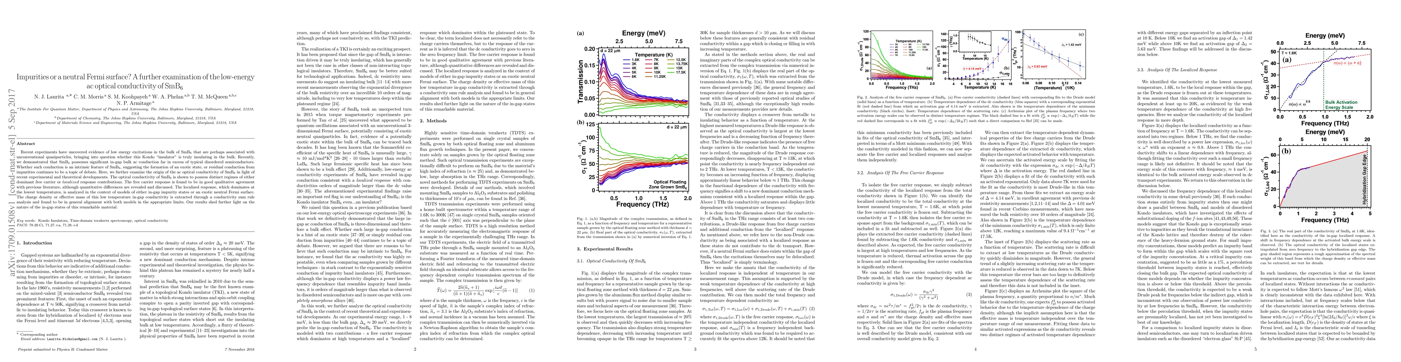 This paper investigates the low-energy ac optical conductivity of SmB$_6$, revealing distinct regimes of free carrier and localized response contributions. The study finds that the free carrier response aligns with previous findings, while the localized response at low temperatures could indicate either impurity states or a neutral Fermi surface, with extracted charge density supporting both models.
