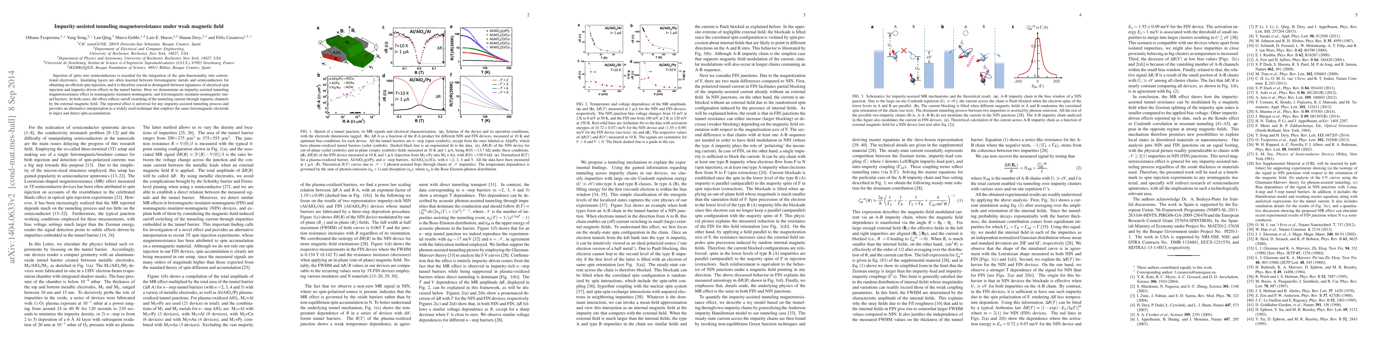 This paper demonstrates an impurity-assisted tunneling magnetoresistance effect in various tunnel barriers, showing on/off switching of tunneling current via impurity channels influenced by an external magnetic field, which resolves the controversy surrounding spin injection techniques.