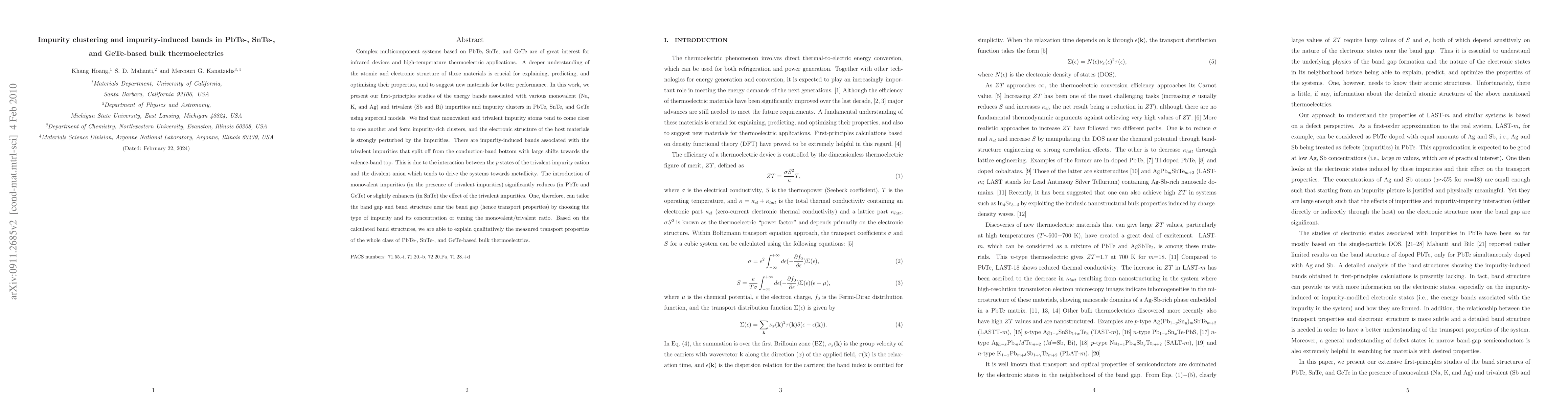 This paper investigates the impact of monovalent and trivalent impurities on PbTe, SnTe, and GeTe thermoelectric materials using first-principles calculations. It finds that impurity atoms cluster together, significantly altering the electronic structure and inducing impurity-related bands, which can drive the systems towards metallicity. The study suggests that the band gap and transport properties can be tailored by adjusting impurity types and ratios.
