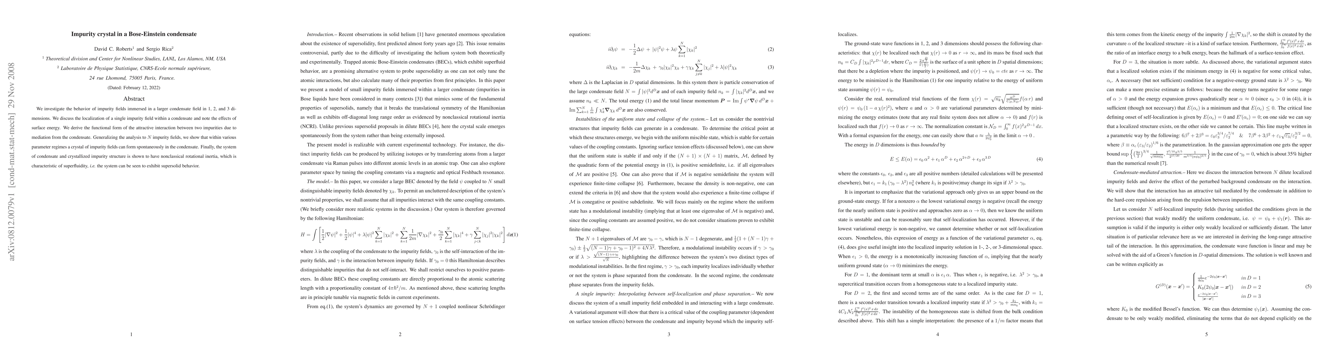A theoretical approach combining quantum mechanics and condensed matter physics was used to study the behavior of impurities in a condensate