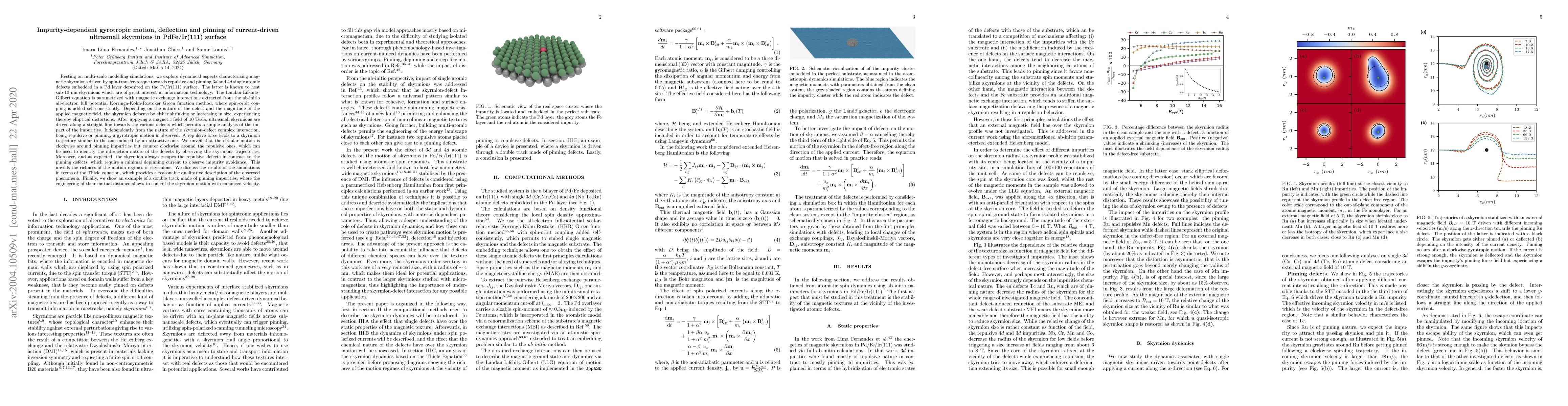 Resting on multi-scale modelling simulations, we explore dynamical aspects characterizing skyrmions driven by spin-transfer-torque towards repulsive and pinning 3d and 4d single atomic defects embedded in a Pd layer deposited on the Fe/Ir(111) surface. The latter is known to host sub-10 nm skyrmions which are of great interest in information technology. The Landau-Lifshitz-Gilbert equation is parametrized with magnetic exchange interactions extracted from first-principles. Depending on the nature of the defect and the magnitude of the applied magnetic field, the skyrmion deforms by either shrinking or increasing in size, experiencing thereby elliptical distortions. After applying a magnetic field of 10 Tesla, ultrasmall skyrmions are driven along a straight line towards the various defects which permits a simple analysis of the impact of the impurities. Independently from the nature of the skyrmion-defect complex interaction a gyrotropic motion is observed. A repulsive force leads to a skyrmion trajectory similar to the one induced by an attractive one. We unveil that the circular motion is clockwise around pinning impurities but counter clockwise around the repulsive ones, which can be used to identify the interaction nature of the defects by observing the skyrmions trajectories. Moreover, and as expected, the skyrmion always escapes the repulsive defects in contrast to the pinning defects, which require a minimal depinning current to observe impurity avoidance. This unveils the richness of the motion regimes of skyrmions. We discuss the results of the simulations in terms of the Thiele equation, which provides a reasonable qualitative description of the observed phenomena. Finally, we show an example of a double track made of pinning impurities, where the engineering of their mutual distance allows to control the skyrmion motion with enhanced velocity.