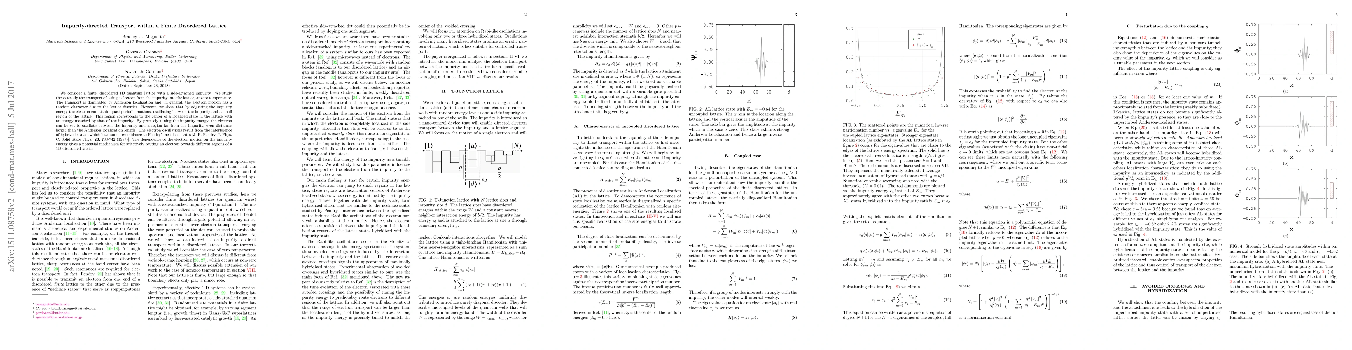 This paper explores electron transport in a finite, disordered 1D quantum lattice with an impurity, demonstrating that by tuning the impurity energy, electrons can exhibit quasi-periodic oscillations between the impurity and specific regions of the lattice, akin to Pendry's necklace states, offering a potential route for selective electron routing.
