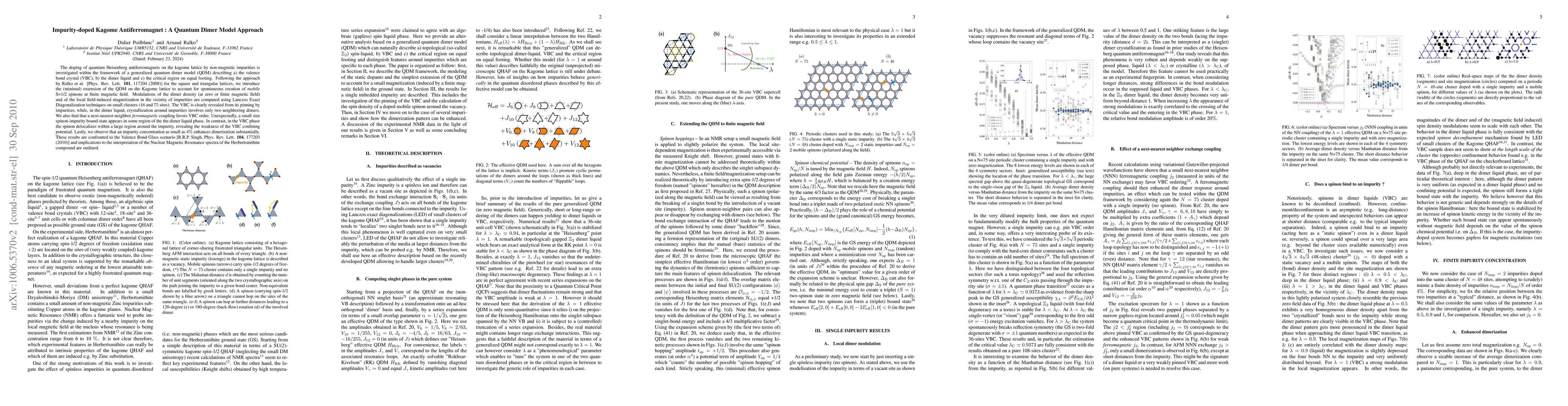 This paper investigates impurity-doped quantum Heisenberg antiferromagnets on the kagome lattice using a generalized quantum dimer model. The study reveals the effects of impurities on the valence bond crystal and dimer liquid phases, showing that even a small impurity concentration can significantly enhance dimerization. The research also uncovers unexpected spinon-impurity bound states in the dimer liquid phase, contrasting with the delocalized spinons in the valence bond crystal phase.