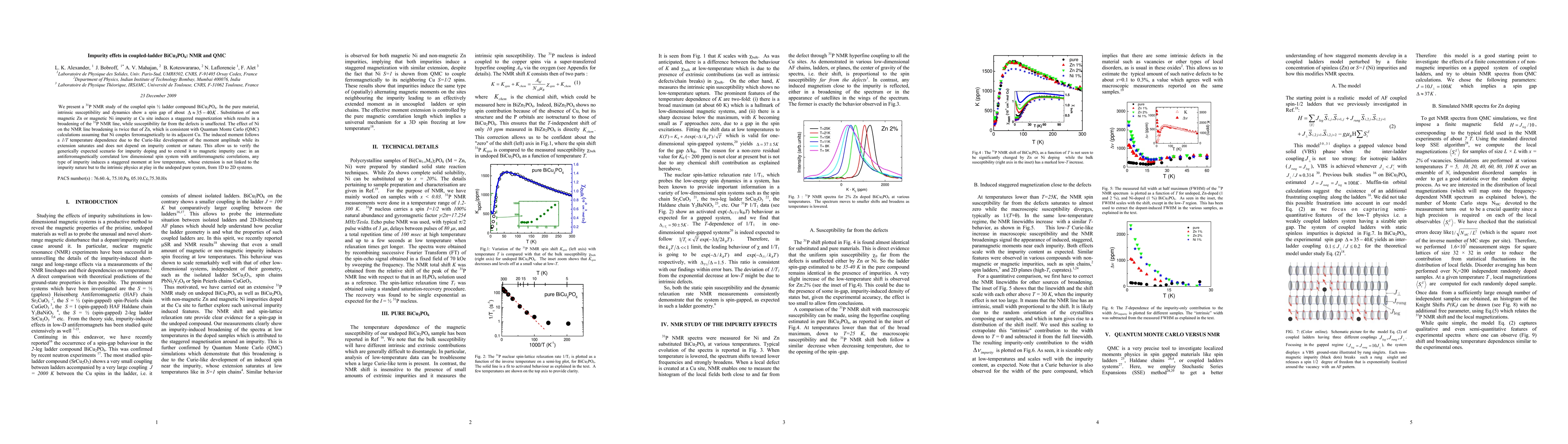 This study investigates impurity effects in the coupled-ladder compound BiCu2PO6 using 31P NMR and Quantum Monte Carlo simulations. The introduction of Zn or Ni impurities at Cu sites induces staggered magnetization, broadening the 31P NMR line, with Ni's effect being twice that of Zn, consistent with QMC calculations.