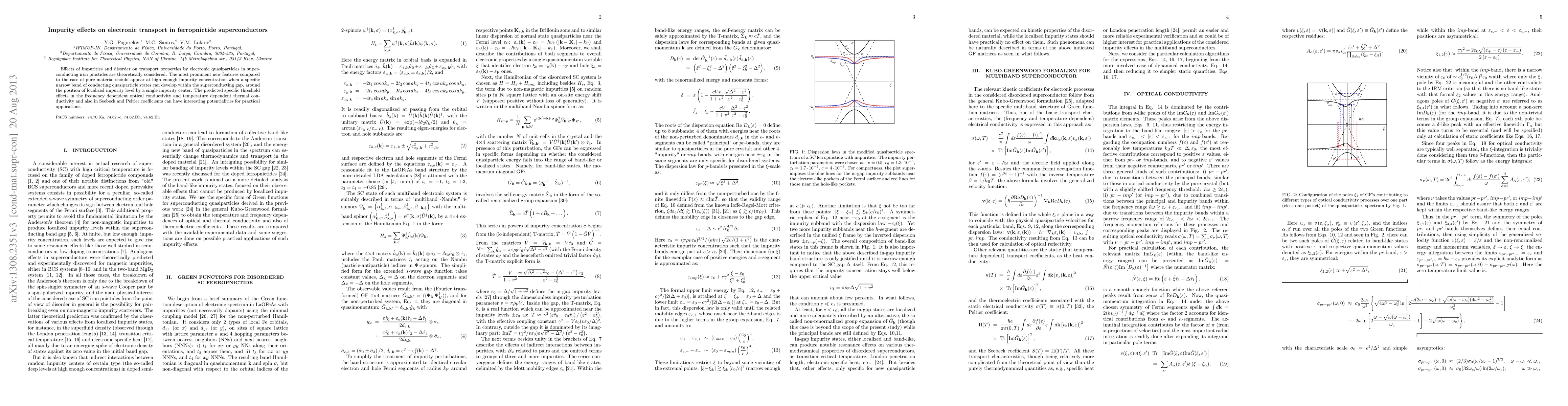 Effects of impurities and disorder on transport properties by electronic quasiparticles in superconducting iron pnictides are theoretically considered. The most prominent new features compared to the case of pure material should appear at high enough impurity concentration when a specific narrow band of conducting quasiparticle states can develop within the superconducting gap, around the position of localized impurity level by a single impurity center. The predicted specific threshold effects in the frequency dependent optical conductivity and temperature dependent thermal conductivity and also in Seebeck and Peltier coefficients can have interesting potentialities for practical applications.
