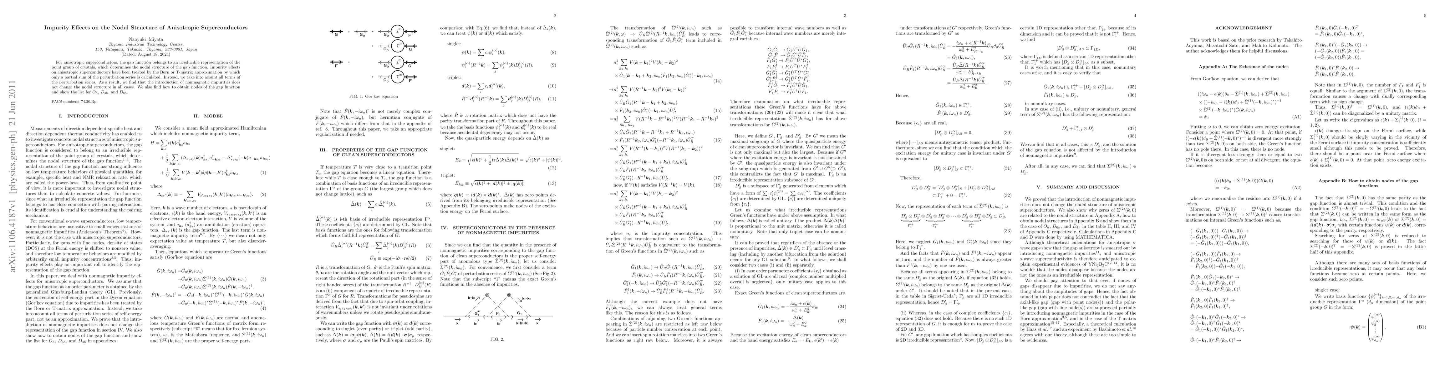The study investigates how impurities affect the nodal structure of anisotropic superconductors, finding that nonmagnetic impurities do not always alter the gap function's nodes, and provides a list of symmetry operations for certain point groups.