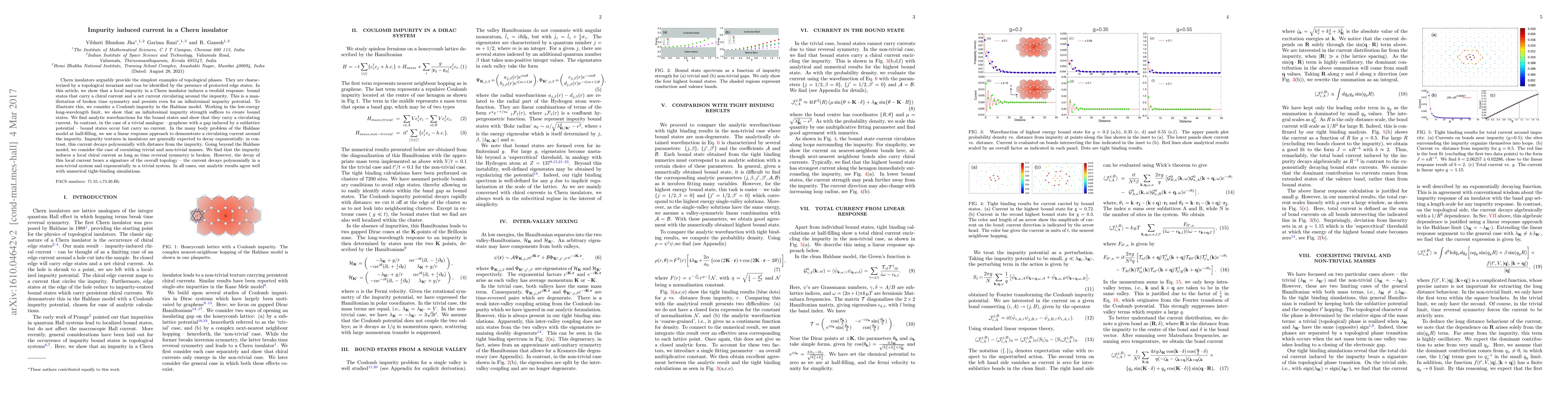 Chern insulators arguably provide the simplest examples of topological phases. They are characterized by a topological invariant and can be identified by the presence of protected edge states. In this article, we show that a local impurity in a Chern insulator induces a twofold response: bound states that carry a chiral current and a net current circulating around the impurity. This is a manifestation of broken time symmetry and persists even for an infinitesimal impurity potential. To illustrate this, we consider a Coulomb impurity in the Haldane model. Working in the low-energy long-wavelength limit, we show that an infinitesimal impurity strength suffices to create bound states. We find analytic wavefunctions for the bound states and show that they carry a circulating current. In contrast, in the case of a trivial analogue, graphene with a gap induced by a sublattice potential, bound states occur but carry no current. In the many body problem of the Haldane model at half-filling, we use a linear response approach to demonstrate a circulating current around the impurity. Impurity textures in insulators are generally expected to decay exponentially; in contrast, this current decays polynomially with distance from the impurity. Going beyond the Haldane model, we consider the case of coexisting trivial and non-trivial masses. We find that the impurity induces a local chiral current as long as time reversal symmetry is broken. However, the decay of this local current bears a signature of the overall topology - the current decays polynomially in a non-trivial system and exponentially in a trivial system. In all cases, our analytic results agree well with numerical tight-binding simulations.