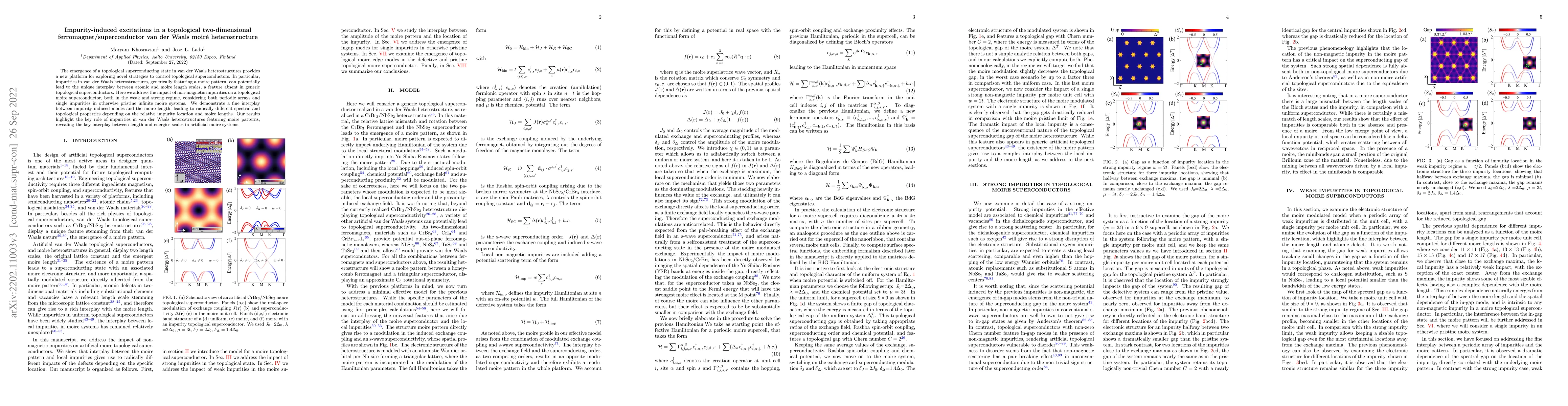 The emergence of a topological superconducting state in van der Waals heterostructures provides a new platform for exploring novel strategies to control topological superconductors. In particular, impurities in van der Waals heterostructures, generically featuring a moire pattern, can potentially lead to the unique interplay between atomic and moire length scales, a feature absent in generic topological superconductors. Here we address the impact of non-magnetic impurities on a topological moire superconductor, both in the weak and strong regime, considering both periodic arrays and single impurities in otherwise pristine infinite moire systems. We demonstrate a fine interplay between impurity-induced modes and the moire length, leading to radically different spectral and topological properties depending on the relative impurity location and moire lengths. Our results highlight the key role of impurities in van der Waals heterostructures featuring moire patterns, revealing the key interplay between length and energy scales in artificial moire systems.
