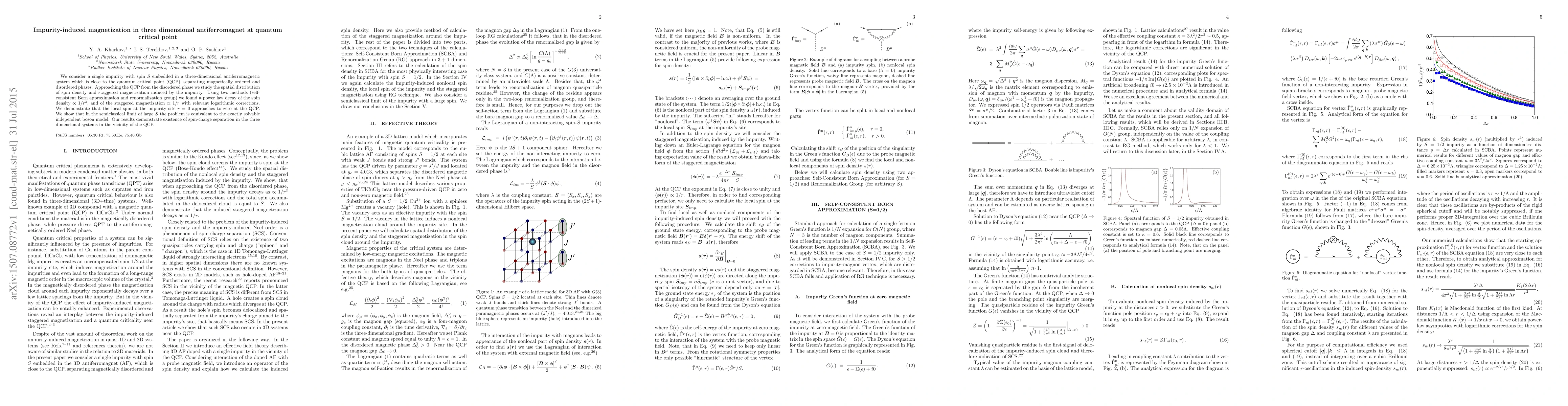 Researchers study the effect of a single impurity in a 3D antiferromagnetic system near its quantum critical point, finding power-law decay of spin density and magnetization with logarithmic corrections.