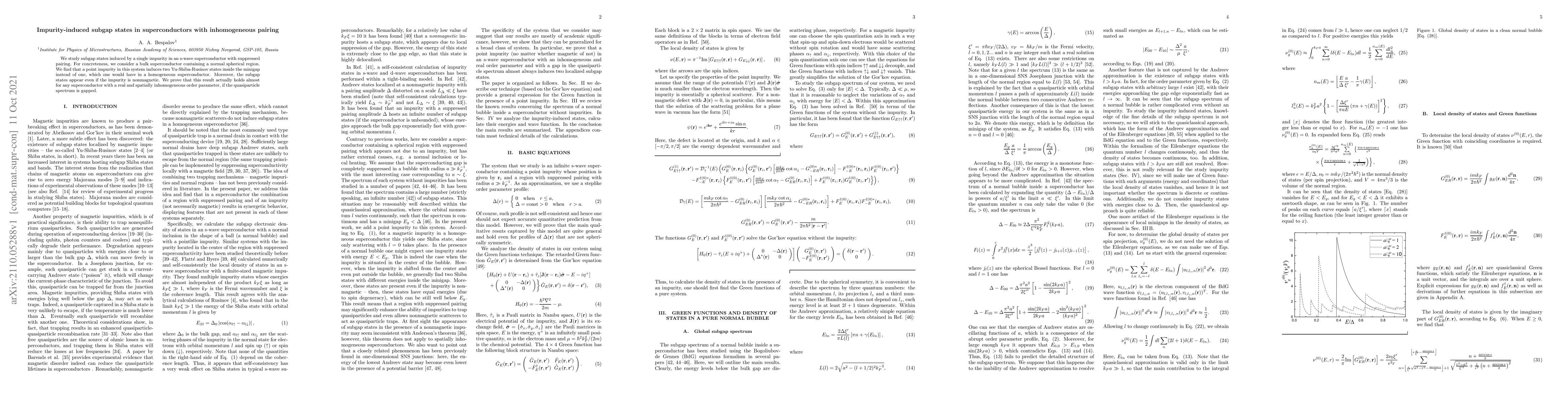 We study subgap states induced by a single impurity in an s-wave superconductor with suppressed pairing. For concreteness, we consider a bulk superconductor containing a normal spherical region. We find that a point impurity in this system induces two Yu-Shiba-Rusinov states inside the minigap instead of one, which one would have in a homogeneous superconductor. Moreover, the subgap states appear even if the impurity is nonmagnetic. We prove that this result actually holds almost for any superconductor with a real and spatially inhomogeneous order parameter, if the quasiparticle spectrum is gapped.