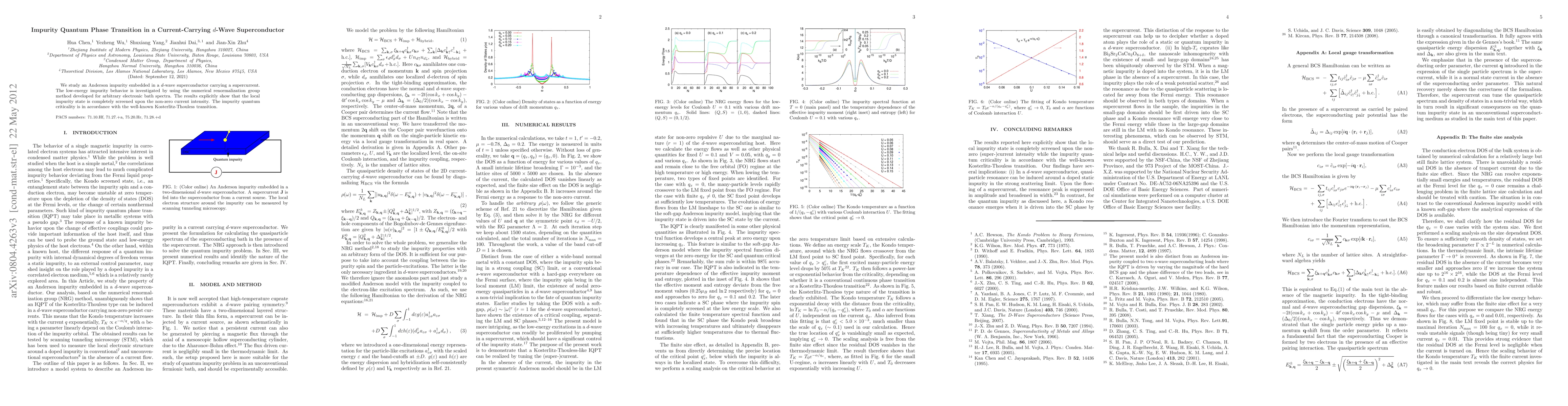 This paper investigates an Anderson impurity in a current-carrying d-wave superconductor, revealing complete screening of the impurity state at non-zero current using numerical renormalization group methods. The study finds impurity quantum criticality aligns with the Kosterlitz-Thouless transition.