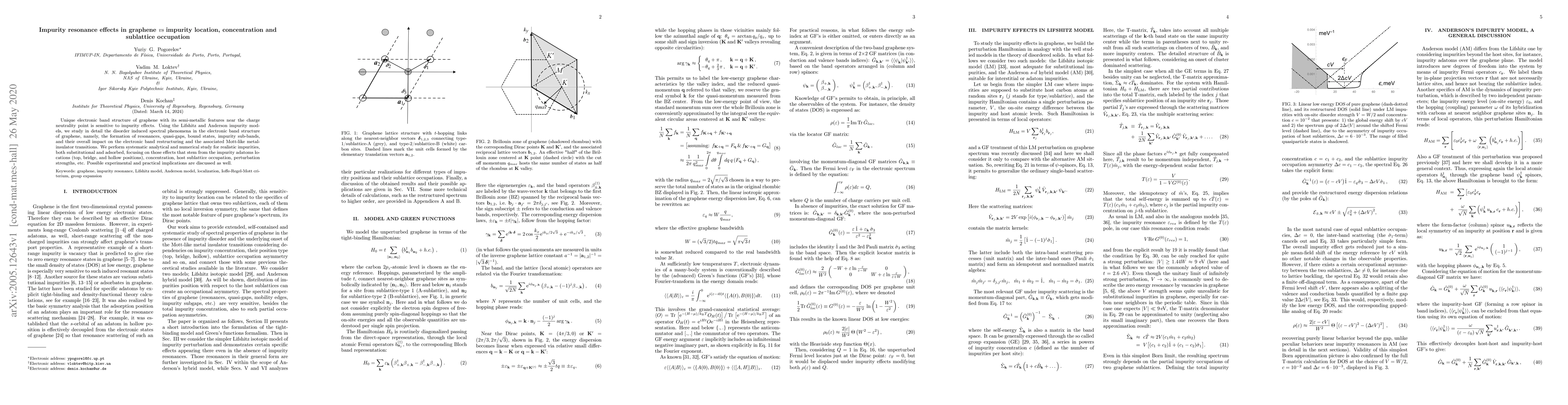 This research investigates how various impurity types and concentrations affect the electronic band structure of graphene, highlighting phenomena like resonance formation and metal-insulator transitions. It utilizes analytical and numerical methods to explore the impacts of impurity location, concentration, and sublattice occupation on graphene's unique electronic properties.