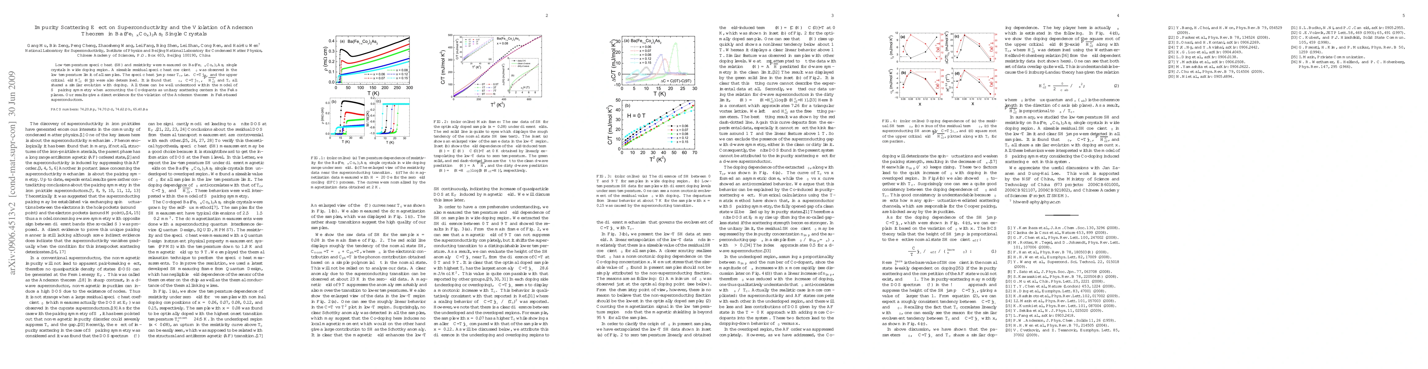 Low-temperature specific heat (SH) and resistivity were measured on Ba(Fe_{1-x}Co_x)_2As_2 single crystals in wide doping region. A sizeable residual specific heat coefficient \gamma_0 was observed in the low temperature limit of all samples. The specific heat jump near T_c, i.e. \Delta C/T|_{T_c} and the upper critical field H_{c2}^c (H||c) were also determined. It is found that -\gamma_0, \Delta C/T|_{T_c}, \sqrt{H_{c2}^c} and T_c all shared a similar evolution with doping. All these can be well understood within the model of S$^\pm$ pairing symmetry when accounting the Co-dopants as unitary scattering centers in the FeAs planes. Our results give a direct evidence for the violation of the Anderson theorem in FeAs-based superconductors.