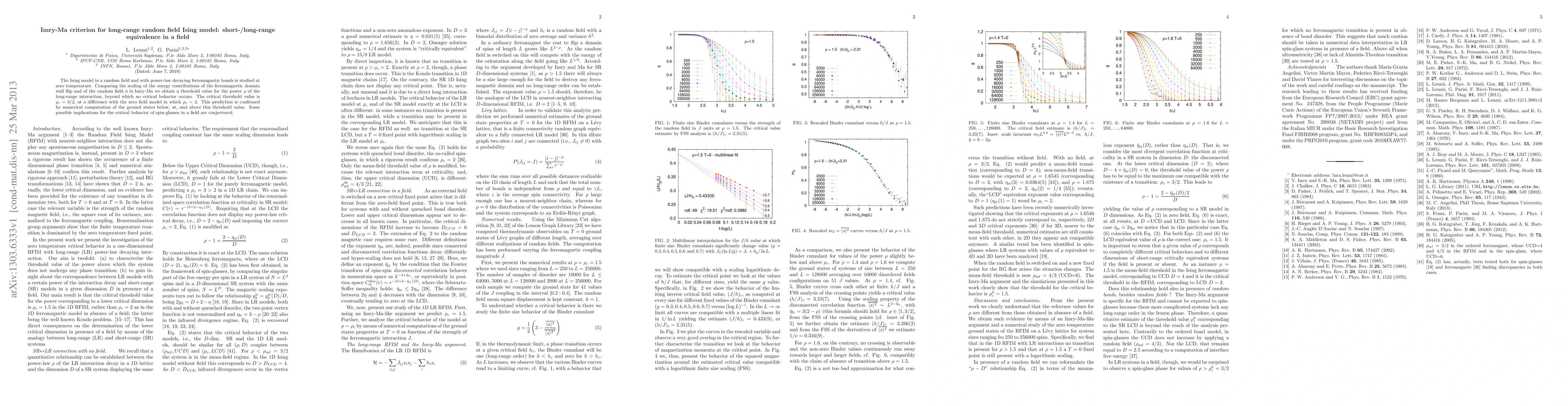 The paper investigates the Ising model in a random field with power-law decaying ferromagnetic bonds, finding a critical threshold $\rho_c=3/2$ for long-range interactions beyond which no critical behavior occurs, differing from $\rho_c=2$ in the zero field model. Numerical computations confirm this prediction and suggest implications for spin-glass critical behavior in a field.