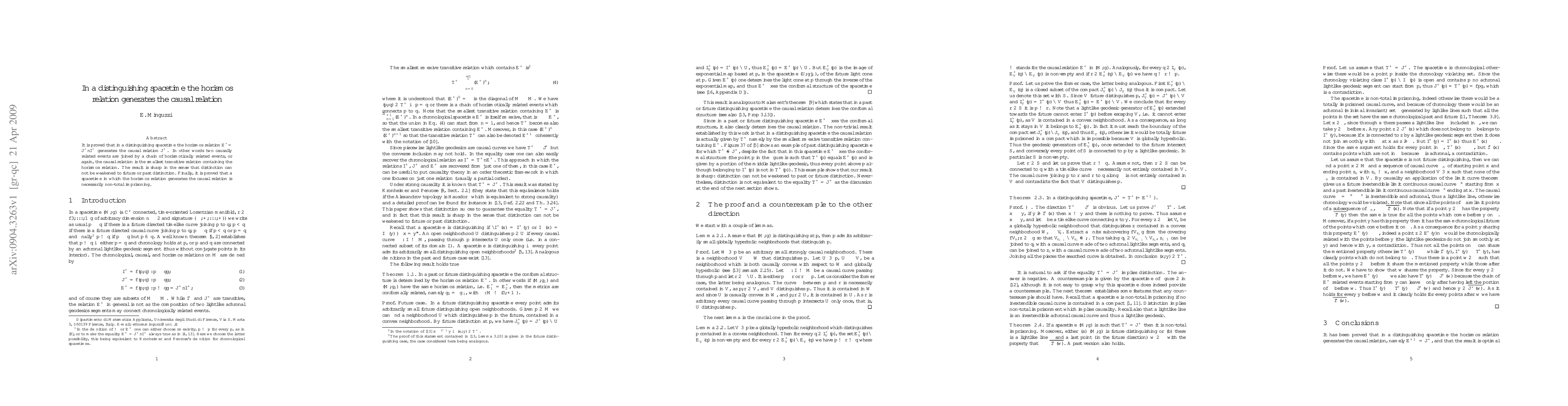 It is proved that in a distinguishing spacetime the horismos relation E^+=J^+\I^+ generates the causal relation J^+. In other words two causally related events are joined by a chain of horismotically related events, or again, the causal relation is the smallest transitive relation containing the horismos relation. The result is sharp in the sense that distinction can not be weakened to future or past distinction. Finally, it is proved that a spacetime in which the horismos relation generates the causal relation is necessarily non-total imprisoning.