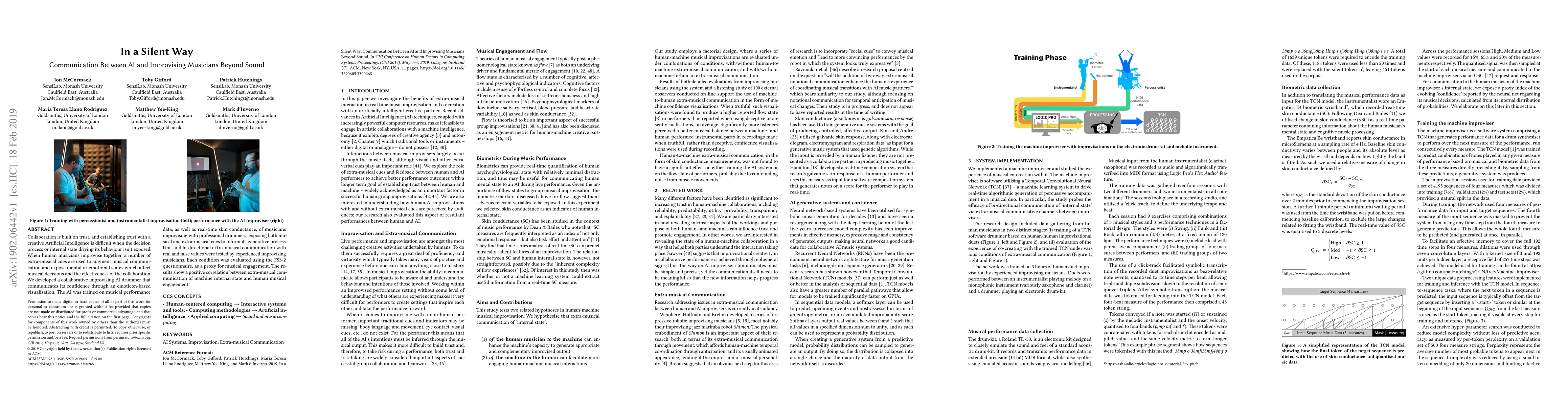Collaboration is built on trust, and establishing trust with a creative Artificial Intelligence is difficult when the decision process or internal state driving its behaviour isn't exposed. When human musicians improvise together, a number of extra-musical cues are used to augment musical communication and expose mental or emotional states which affect musical decisions and the effectiveness of the collaboration. We developed a collaborative improvising AI drummer that communicates its confidence through an emoticon-based visualisation. The AI was trained on musical performance data, as well as real-time skin conductance, of musicians improvising with professional drummers, exposing both musical and extra-musical cues to inform its generative process. Uni- and bi-directional extra-musical communication with real and false values were tested by experienced improvising musicians. Each condition was evaluated using the FSS-2 questionnaire, as a proxy for musical engagement. The results show a positive correlation between extra-musical communication of machine internal state and human musical engagement.