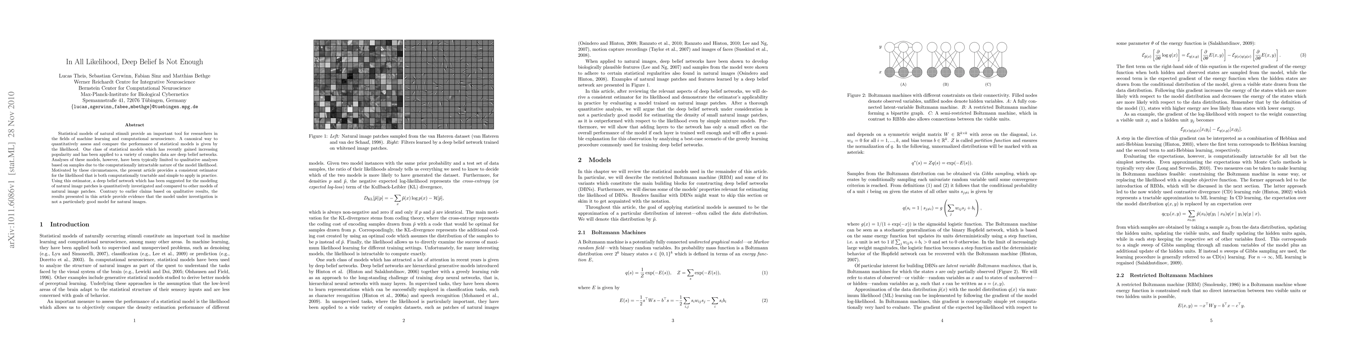 A new method was developed to calculate the likelihood of a deep belief network model for natural images, showing that it is not as good at modeling real-world images as previously thought.