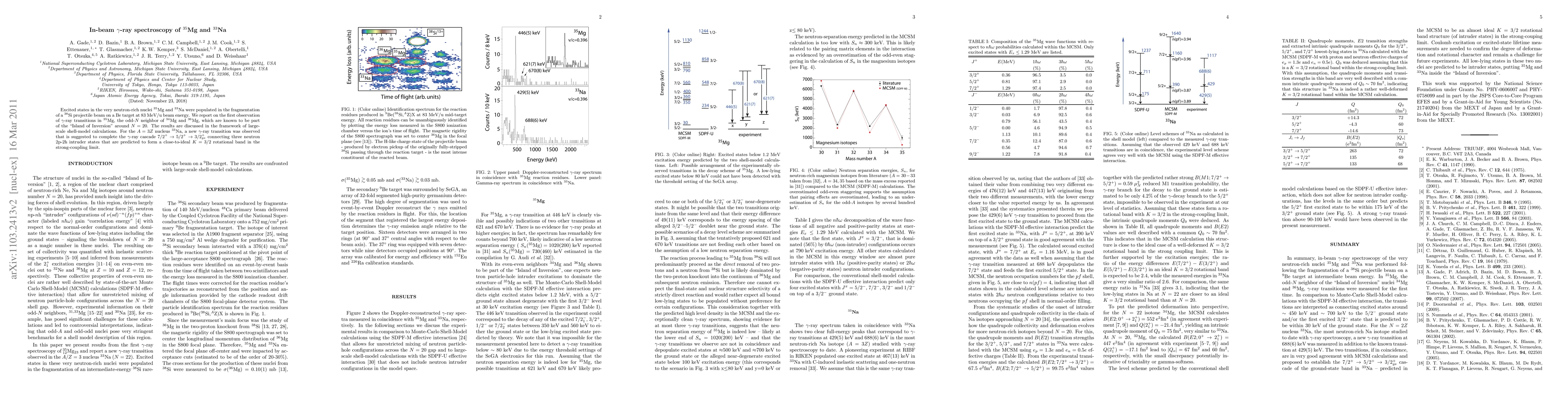 This study reports the first gamma-ray transitions in the neutron-rich nucleus 35Mg, revealing its role in the "Island of Inversion" around N = 20, and identifies a new gamma-ray transition in 33Na, completing a predicted K = 3/2 rotational band. Results are analyzed using large-scale shell-model calculations.