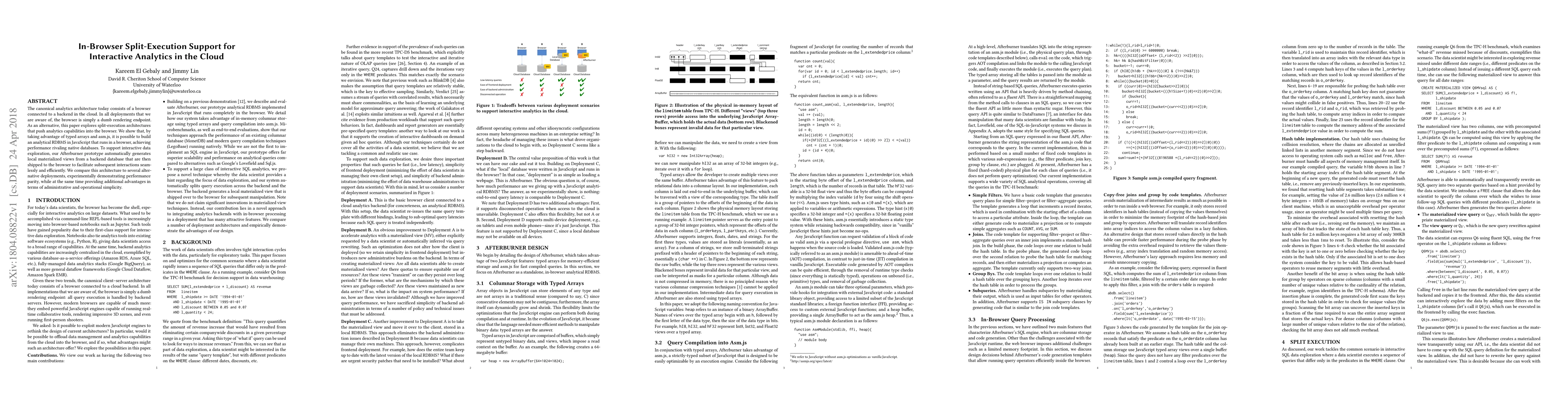 The canonical analytics architecture today consists of a browser connected to a backend in the cloud. In all deployments that we are aware of, the browser is simply a dumb rendering endpoint. As an alternative, this paper explores split-execution architectures that push analytics capabilities into the browser. We show that, by taking advantage of typed arrays and asm.js, it is possible to build an analytical RDBMS in JavaScript that runs in a browser, achieving performance rivaling native databases. To support interactive data exploration, our Afterburner prototype automatically generates local materialized views from a backend database that are then shipped to the browser to facilitate subsequent interactions seamlessly and efficiently. We compare this architecture to several alternative deployments, experimentally demonstrating performance parity, while at the same time providing additional advantages in terms of administrative and operational simplicity.