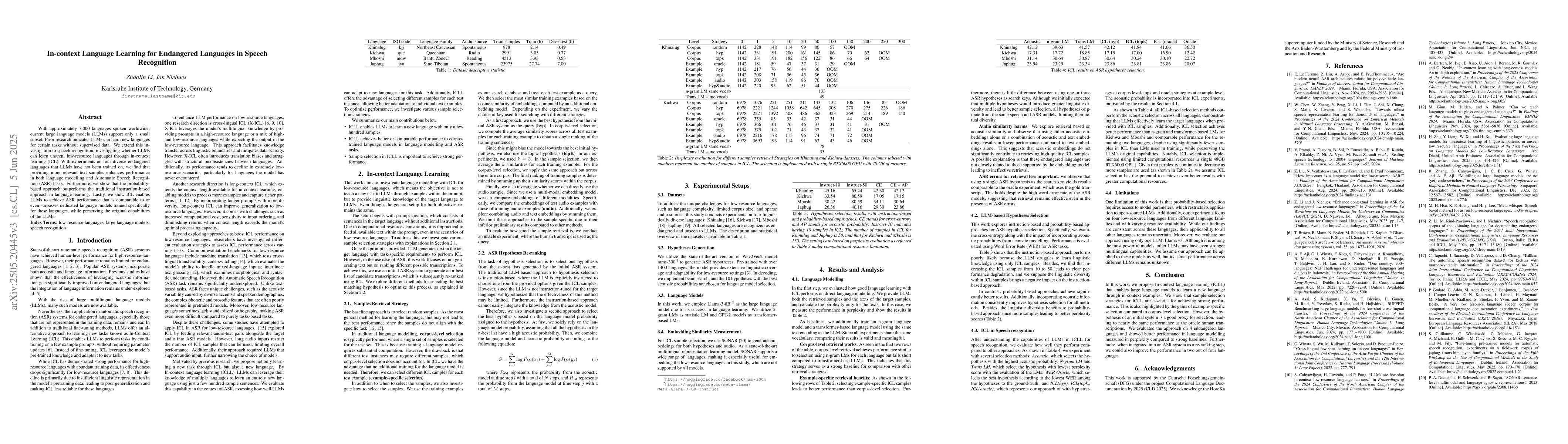 The paper presents an effective probability-based in-context learning method for teaching LLMs unseen, low-resource languages in speech recognition tasks.