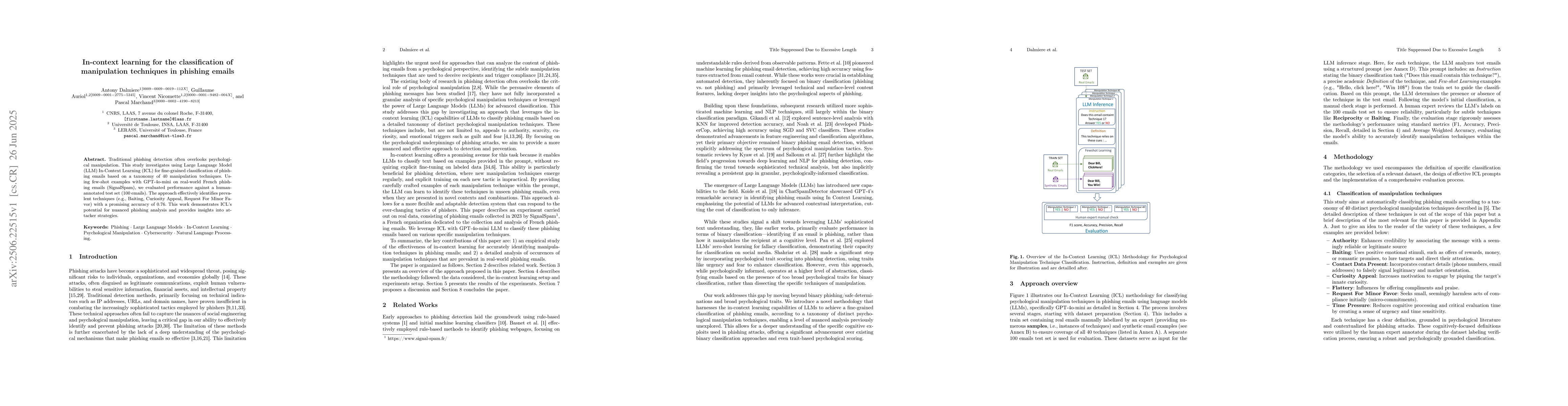 Traditional phishing detection often overlooks psychological manipulation. This study investigates using Large Language Model (LLM) In-Context Learning (ICL) for fine-grained classification of phishing emails based on a taxonomy of 40 manipulation techniques. Using few-shot examples with GPT-4o-mini on real-world French phishing emails (SignalSpam), we evaluated performance against a human-annotated test set (100 emails). The approach effectively identifies prevalent techniques (e.g., Baiting, Curiosity Appeal, Request For Minor Favor) with a promising accuracy of 0.76. This work demonstrates ICL's potential for nuanced phishing analysis and provides insights into attacker strategies.