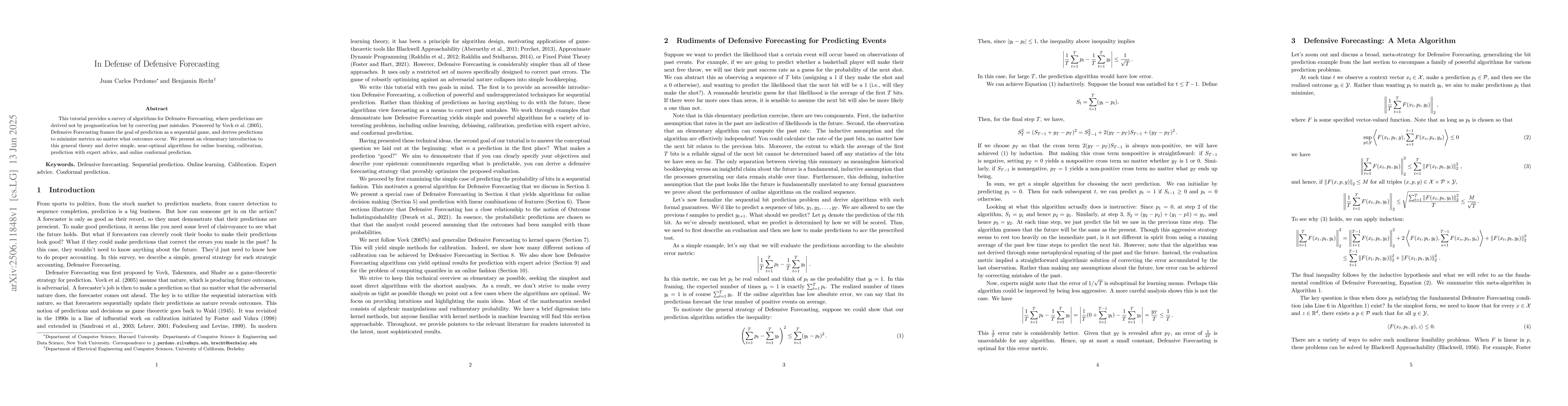 This tutorial provides a survey of algorithms for Defensive Forecasting, where predictions are derived not by prognostication but by correcting past mistakes. Pioneered by Vovk, Defensive Forecasting frames the goal of prediction as a sequential game, and derives predictions to minimize metrics no matter what outcomes occur. We present an elementary introduction to this general theory and derive simple, near-optimal algorithms for online learning, calibration, prediction with expert advice, and online conformal prediction.