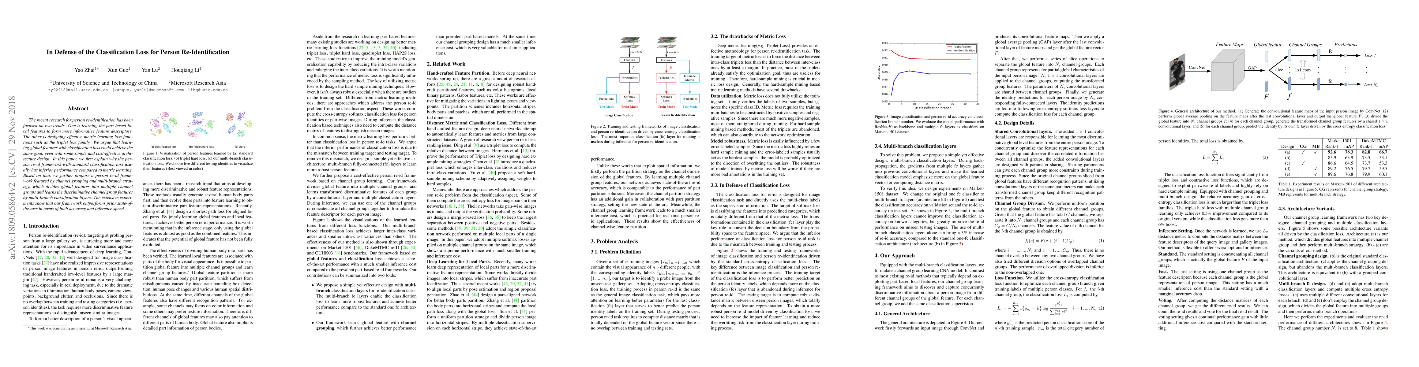 The recent research for person re-identification has been focused on two trends. One is learning the part-based local features to form more informative feature descriptors. The other is designing effective metric learning loss functions such as the triplet loss family. We argue that learning global features with classification loss could achieve the same goal, even with some simple and cost-effective architecture design. In this paper, we first explain why the person re-id framework with standard classification loss usually has inferior performance compared to metric learning. Based on that, we further propose a person re-id framework featured by channel grouping and multi-branch strategy, which divides global features into multiple channel groups and learns the discriminative channel group features by multi-branch classification layers. The extensive experiments show that our framework outperforms prior state-of-the-arts in terms of both accuracy and inference speed.