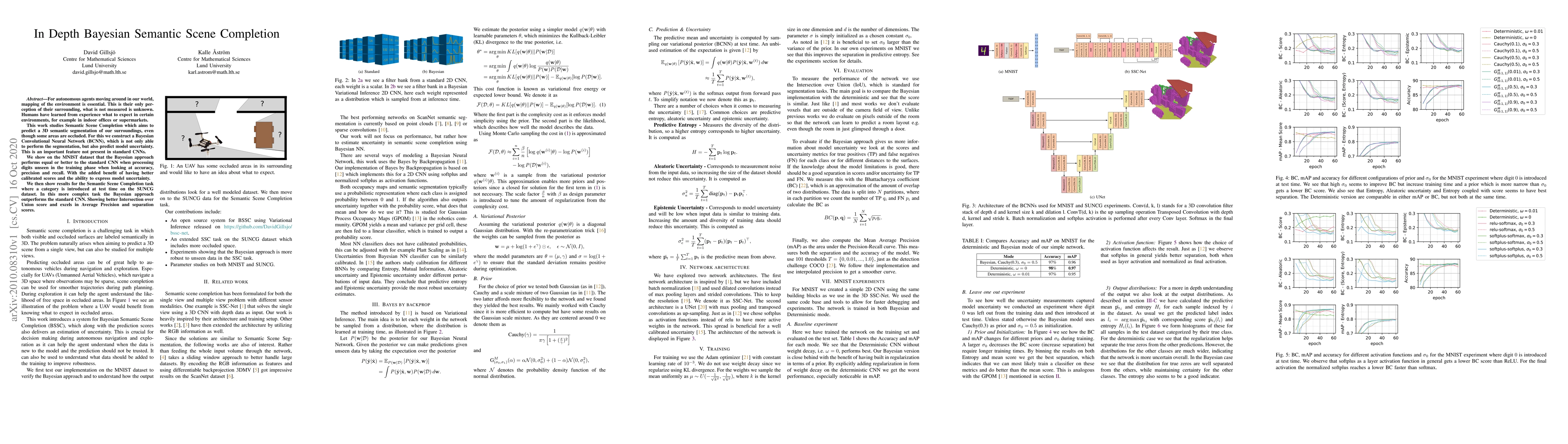 This research introduces a Bayesian Convolutional Neural Network (BCNN) for Semantic Scene Completion, which predicts 3D semantic segmentation even when parts of the scene are occluded. The BCNN not only performs segmentation but also estimates model uncertainty, a feature absent in standard CNNs. The study demonstrates superior performance on both MNIST and SUNCG datasets, showing equal or better accuracy, precision, recall, and better calibration compared to standard CNNs.