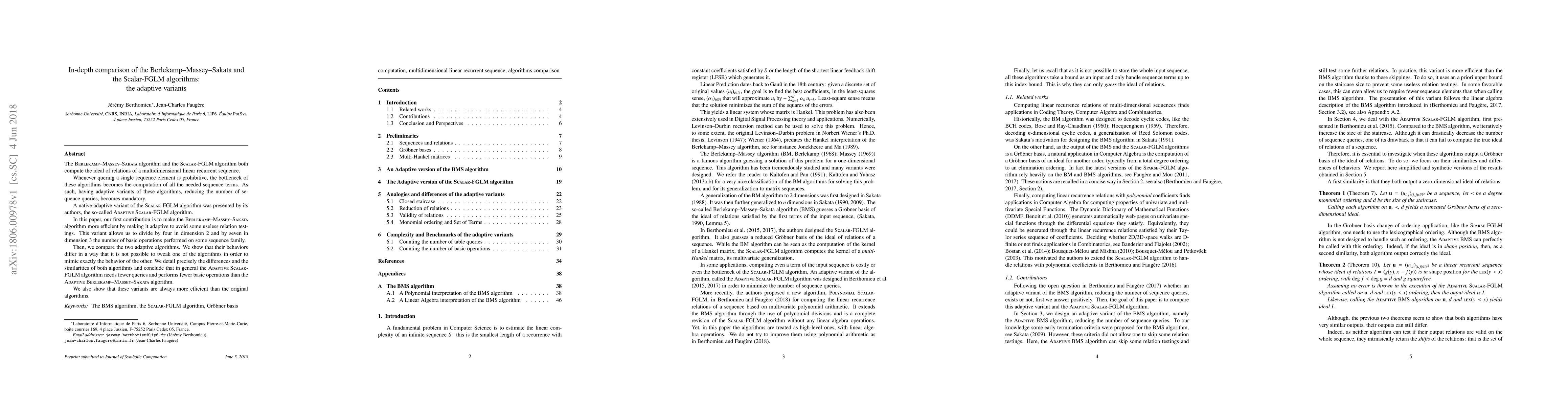 The Berlekamp--Massey--Sakata algorithm and the Scalar-FGLM algorithm both compute the ideal of relations of a multidimensional linear recurrent sequence.Whenever quering a single sequence element is prohibitive, the bottleneck of these algorithms becomes the computation of all the needed sequence terms. As such, having adaptive variants of these algorithms, reducing the number of sequence queries, becomes mandatory.A native adaptive variant of the Scalar-FGLM algorithm was presented by its authors, the so-called Adaptive Scalar-FGLM algorithm.In this paper, our first contribution is to make the Berlekamp--Massey--Sakata algorithm more efficient by making it adaptive to avoid some useless relation test-ings. This variant allows us to divide by four in dimension 2 and by seven in dimension 3 the number of basic operations performed on some sequence family.Then, we compare the two adaptive algorithms. We show that their behaviors differ in a way that it is not possible to tweak one of the algorithms in order to mimic exactly the behavior of the other. We detail precisely the differences and the similarities of both algorithms and conclude that in general the Adaptive Scalar-FGLM algorithm needs fewer queries and performs fewer basic operations than the Adaptive Berlekamp--Massey--Sakata algorithm.We also show that these variants are always more efficient than the original algorithms.