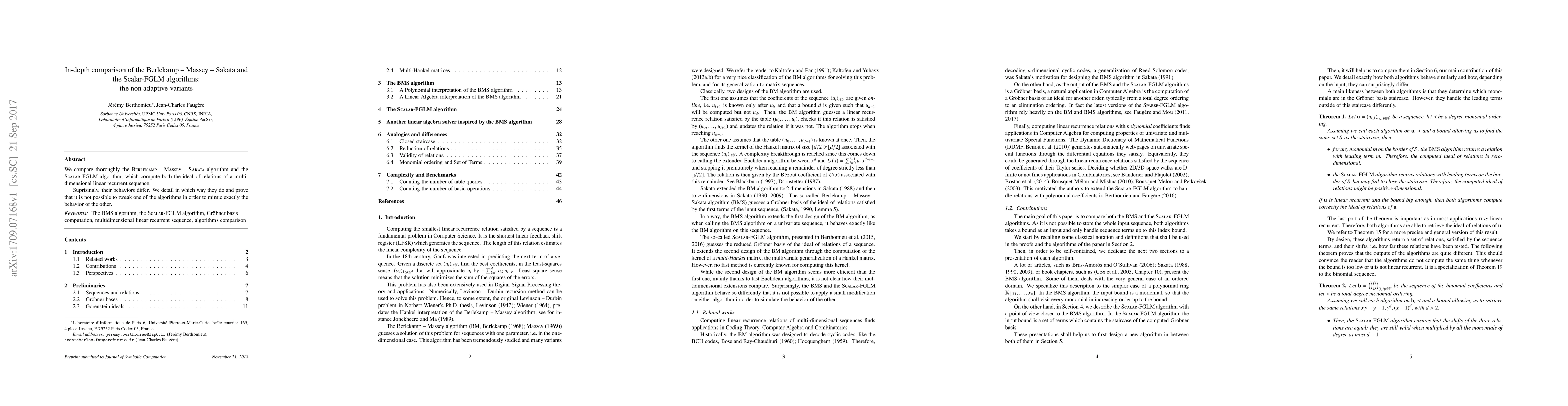We compare thoroughly the Berlekamp -- Massey -- Sakata algorithm and the Scalar-FGLM algorithm, which compute both the ideal of relations of a multi-dimensional linear recurrent sequence. Suprisingly, their behaviors differ. We detail in which way they do and prove that it is not possible to tweak one of the algorithms in order to mimic exactly the behavior of the other.