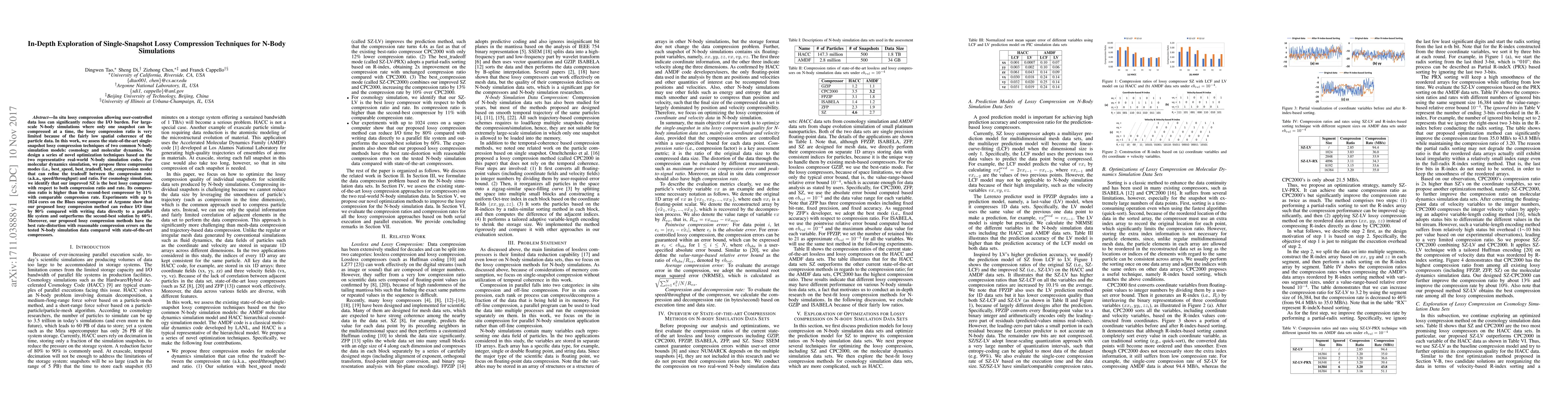This paper evaluates and optimizes single-snapshot lossy compression techniques for N-body simulations, proposing novel methods for cosmology and molecular dynamics. The optimized techniques significantly reduce I/O time and improve compression ratio, outperforming existing solutions by up to 80% in I/O reduction and 11% in compression ratio.