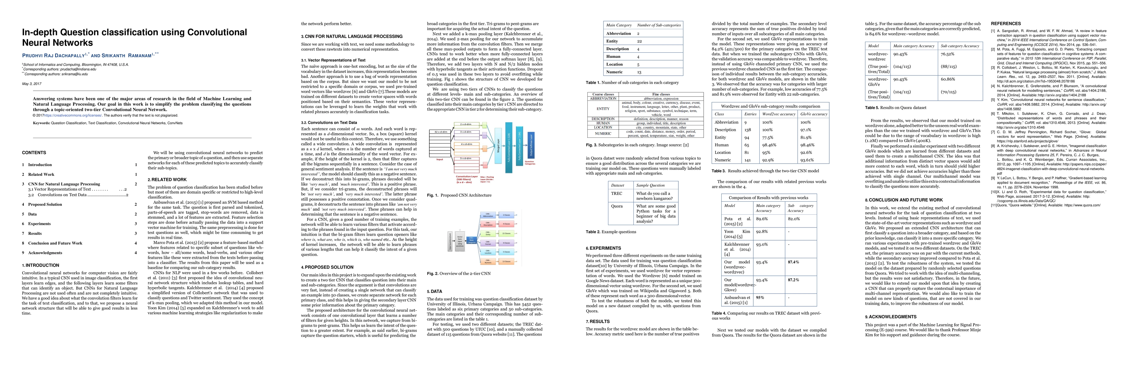 Convolutional neural networks for computer vision are fairly intuitive. In a typical CNN used in image classification, the first layers learn edges, and the following layers learn some filters that can identify an object. But CNNs for Natural Language Processing are not used often and are not completely intuitive. We have a good idea about what the convolution filters learn for the task of text classification, and to that, we propose a neural network structure that will be able to give good results in less time. We will be using convolutional neural networks to predict the primary or broader topic of a question, and then use separate networks for each of these predicted topics to accurately classify their sub-topics.