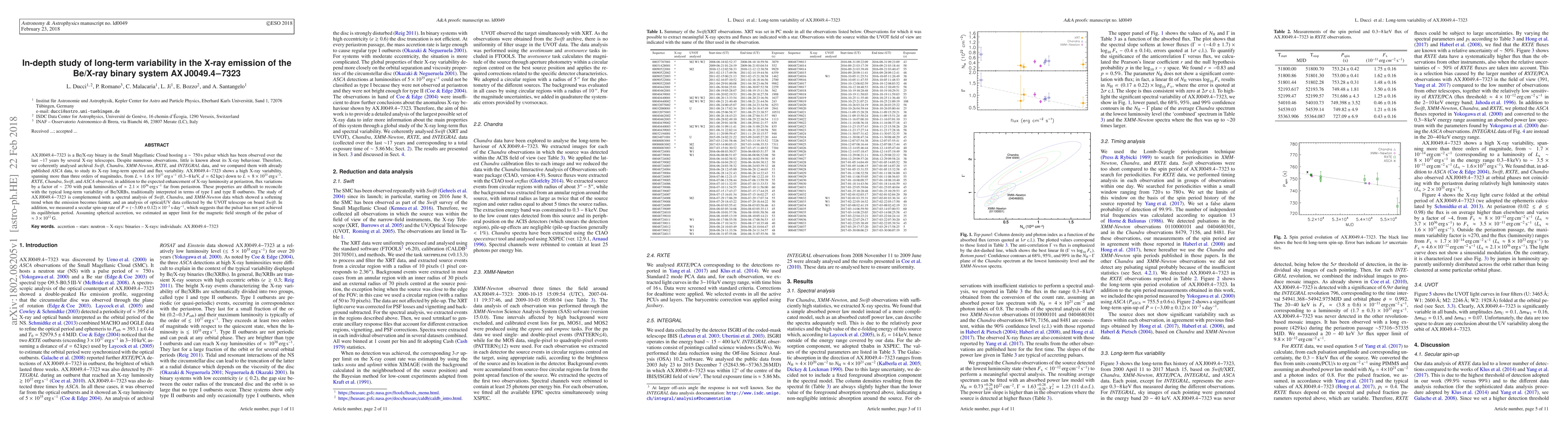 This study analyzes long-term X-ray variability in the Be/X-ray binary AX J0049.4-7323, revealing significant flux variations spanning three orders of magnitude and a softening trend in spectral data. The pulsar exhibits a secular spin-up rate, suggesting it has not yet reached equilibrium.