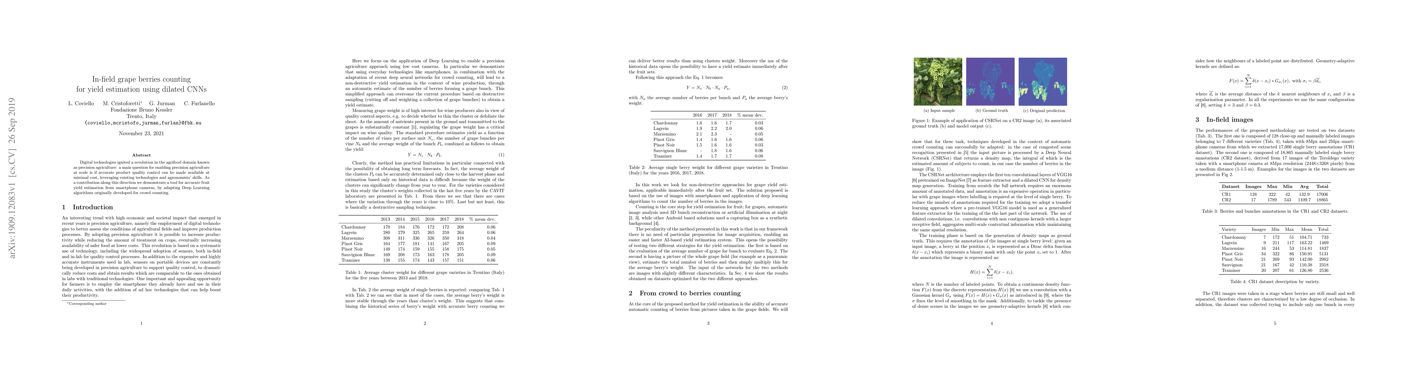 Digital technologies ignited a revolution in the agrifood domain known as precision agriculture: a main question for enabling precision agriculture at scale is if accurate product quality control can be made available at minimal cost, leveraging existing technologies and agronomists' skills. As a contribution along this direction we demonstrate a tool for accurate fruit yield estimation from smartphone cameras, by adapting Deep Learning algorithms originally developed for crowd counting.