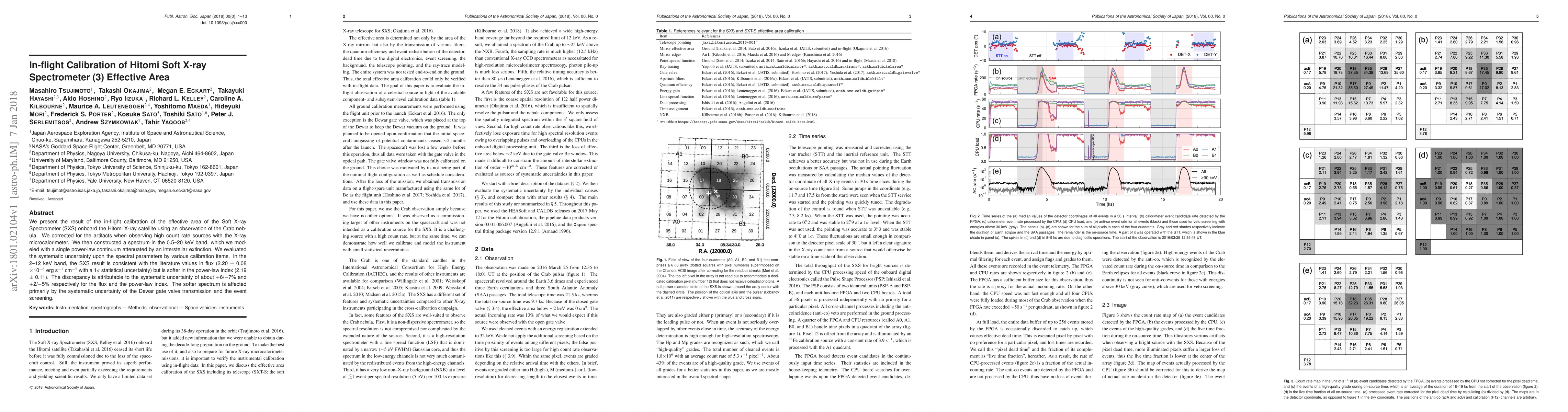 We present the result of the in-flight calibration of the effective area of the Soft X-ray Spectrometer (SXS) onboard the Hitomi X-ray satellite using an observation of the Crab nebula. We corrected for the artifacts when observing high count rate sources with the X-ray microcalorimeter. We then constructed a spectrum in the 0.5-20 keV band, which we modeled with a single power-law continuum attenuated by an interstellar extinction. We evaluated the systematic uncertainty upon the spectral parameters by various calibration items. In the 2-12 keV band, the SXS result is consistent with the literature values in flux (2.20 $\pm$ 0.08) $\times$10$^{-8}$ erg s$^{-1}$ cm$^{-2}$ with a 1$\sigma$ statistical uncertainty) but is softer in the power-law index (2.19 $\pm$ 0.11). The discrepancy is attributable to the systematic uncertainty of about $+$6/$-$7% and $+$2/$-$5% respectively for the flux and the power-law index. The softer spectrum is affected primarily by the systematic uncertainty of the Dewar gate valve transmission and the event screening.
