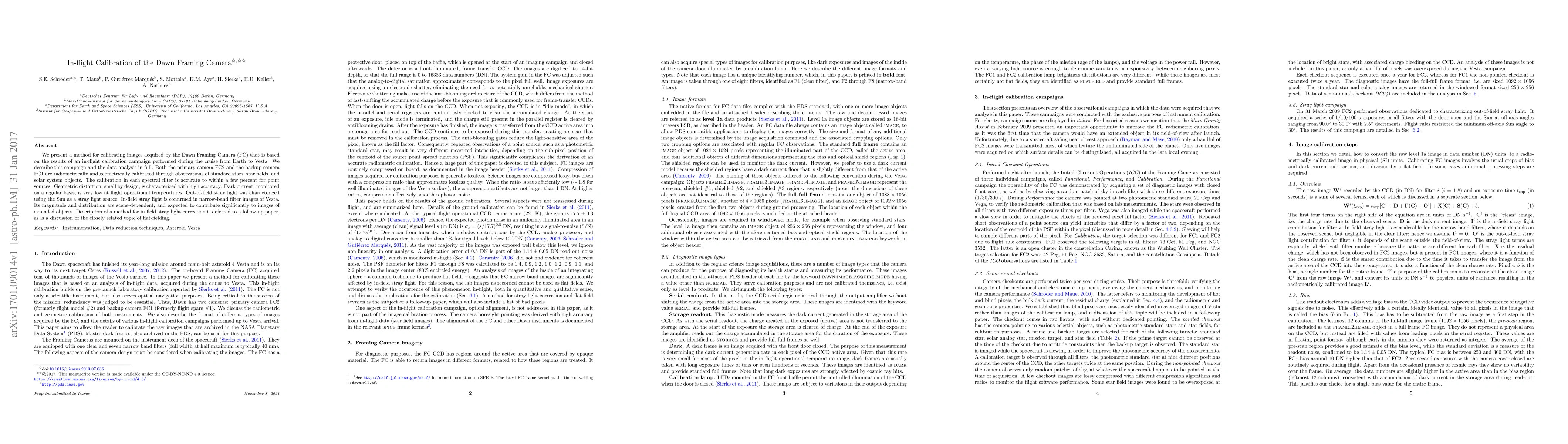 This paper details an in-flight calibration method for the Dawn Framing Camera, achieving radiometric and geometric accuracy within a few percent through observations of standard stars and solar system objects. Stray light effects are identified and will be addressed in a future publication.