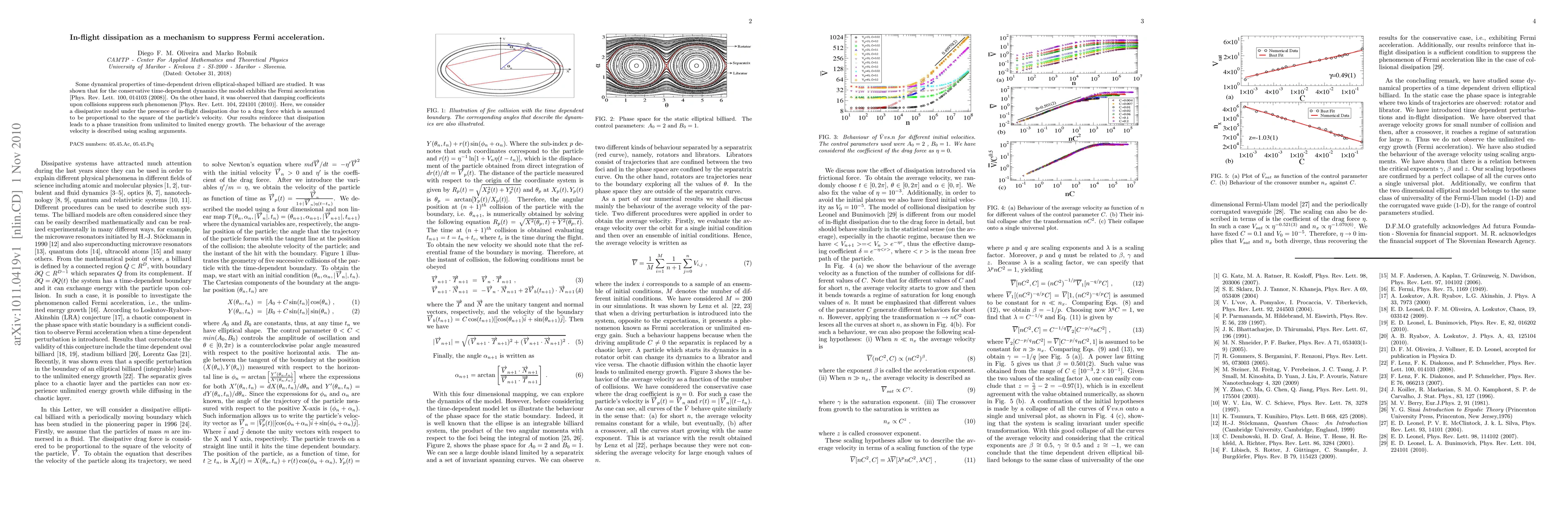 Some dynamical properties of time-dependent driven elliptical-shaped billiard are studied. It was shown that for the conservative time-dependent dynamics the model exhibits the Fermi acceleration [Phys. Rev. Lett. 100, 014103 (2008)]. On the other hand, it was observed that damping coefficients upon collisions suppress such phenomenon [Phys. Rev. Lett. 104, 224101 (2010)]. Here, we consider a dissipative model under the presence of in-flight dissipation due to a drag force which is assumed to be proportional to the square of the particle's velocity. Our results reinforce that dissipation leads to a phase transition from unlimited to limited energy growth. The behaviour of the average velocity is described using scaling arguments.