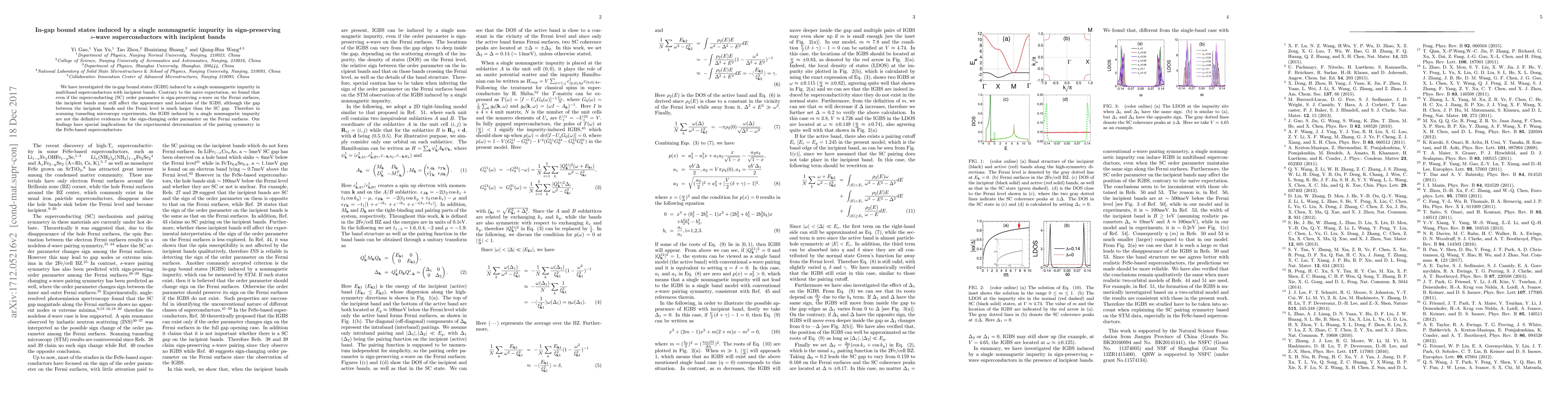 This paper investigates in-gap bound states (IGBS) in multiband superconductors with incipient bands, finding that even in sign-preserving s-wave superconductors, incipient bands can influence IGBS locations. This suggests that IGBS from nonmagnetic impurities do not conclusively indicate a sign-changing order parameter, impacting the determination of pairing symmetry in FeSe-based superconductors.