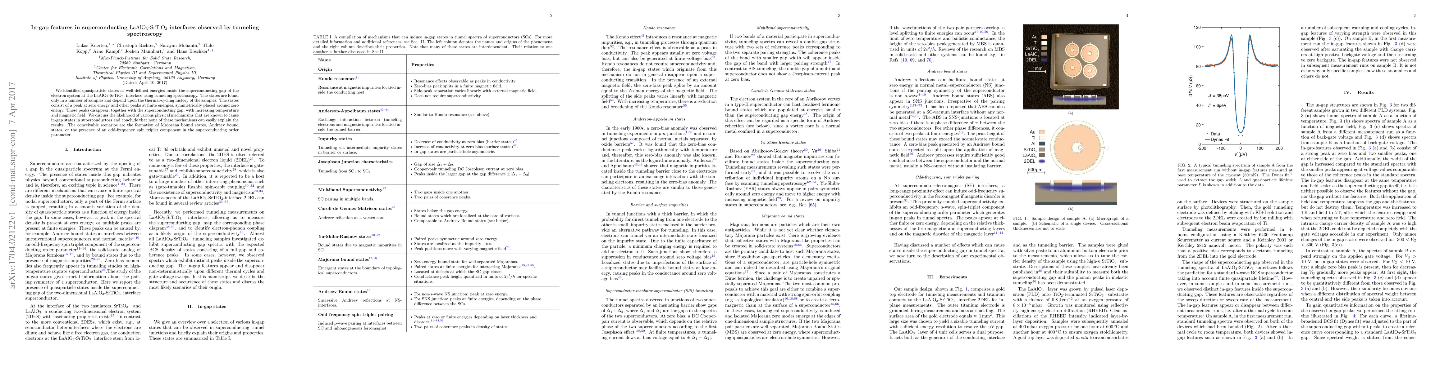 This study identifies quasiparticle states within the superconducting gap of LaAlO$_3$-SrTiO$_3$ interfaces using tunneling spectroscopy, revealing peaks at zero and finite energies that vanish with temperature and magnetic field. The origin of these in-gap features remains unexplained by conventional mechanisms, suggesting potential Majorana or Andreev bound states or an odd-frequency spin triplet component.
