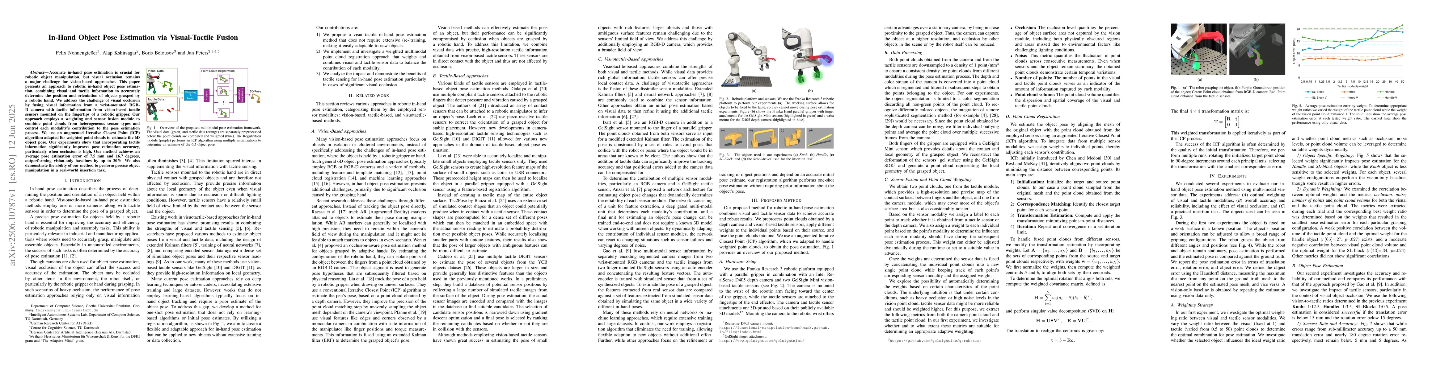 This paper presents a method that combines visual and tactile information to accurately estimate the pose of objects grasped by a robotic hand, improving accuracy even with high visual occlusion.
