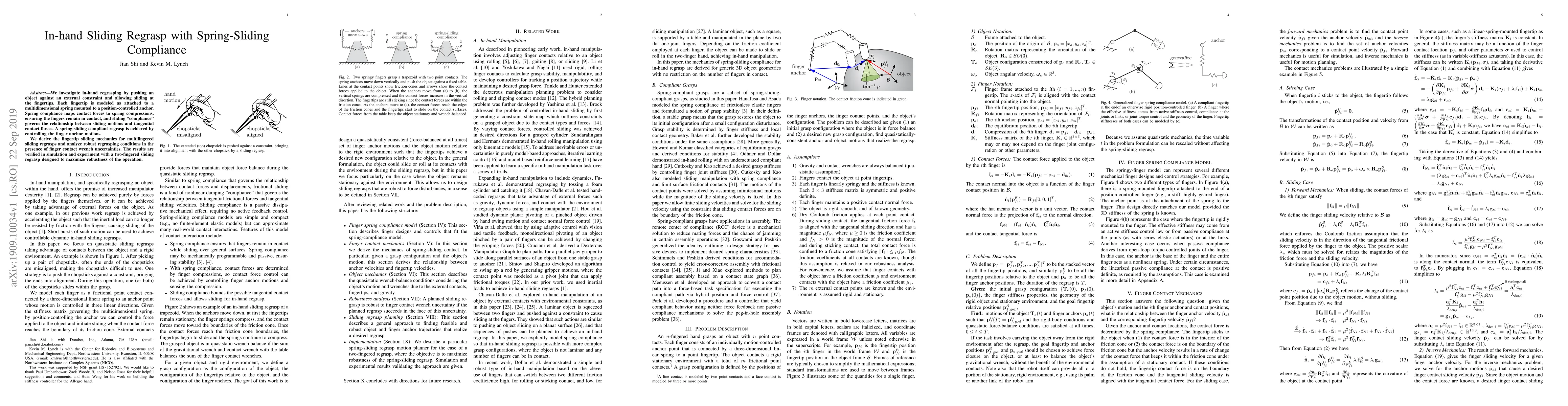 This paper explores in-hand regrasping through fingertip sliding against external constraints using a spring-sliding compliance model. It derives mechanics for multifingered regrasps and analyzes robust regrasp conditions under contact uncertainties, validated through simulations and experiments with a two-fingered setup.