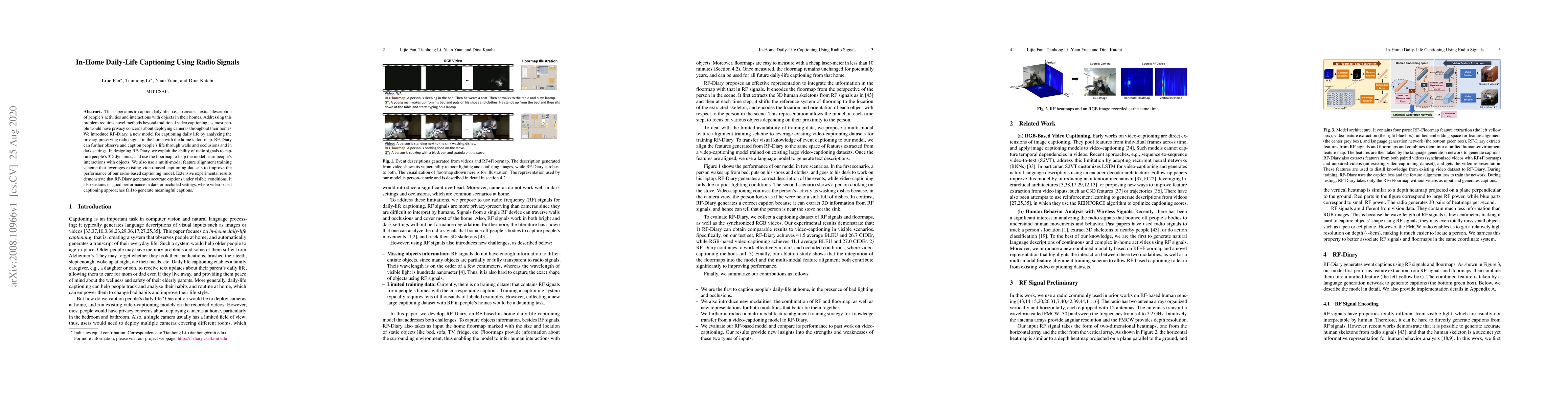 Researchers introduce RF-Diary, a method for captioning daily life at home using radio signals, outperforming traditional video-based approaches in dark or occluded settings.