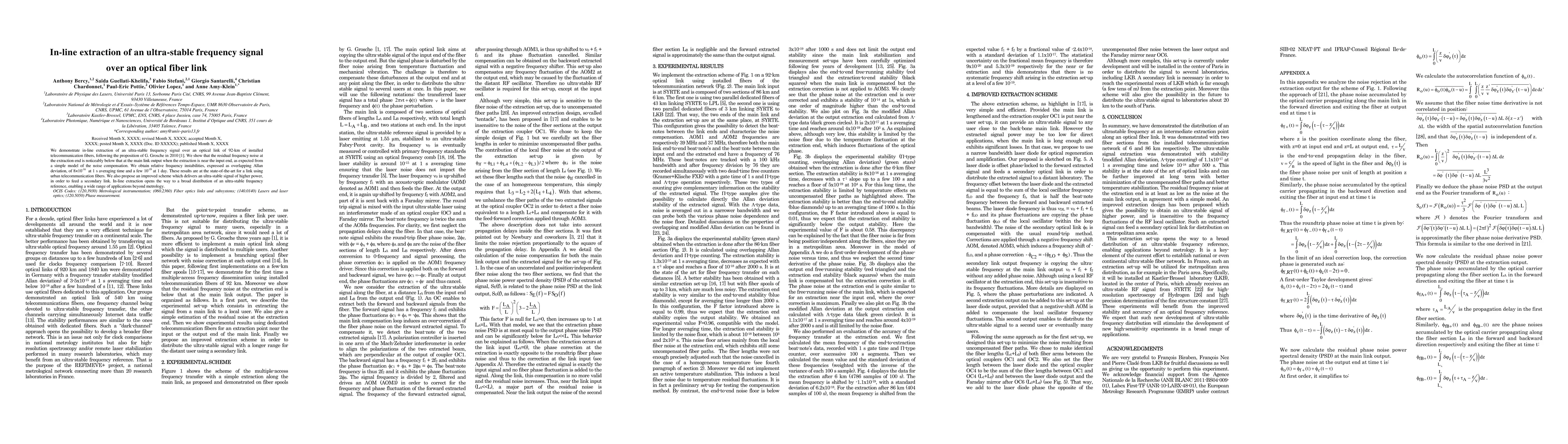 This paper demonstrates the in-line extraction of an ultra-stable frequency signal over a 92-km optical fiber link, achieving state-of-the-art relative frequency instabilities of 8x10^-16 at 1 second and 10^-19 at 1 day. An improved scheme is proposed to enhance the signal power for secondary applications.