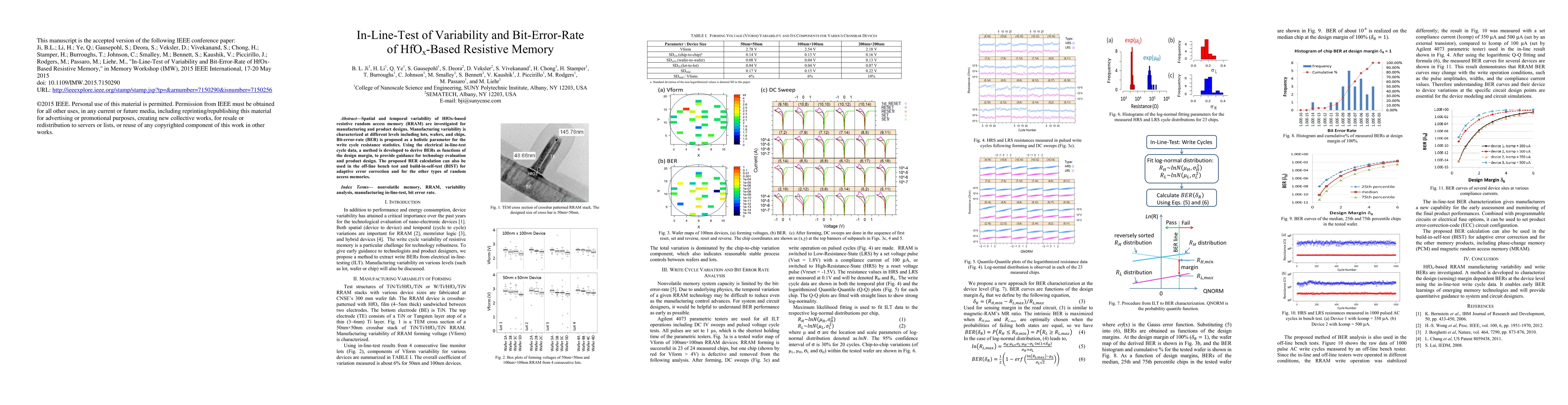 Researchers investigated variability and bit-error-rate in HfOx-based RRAMs to improve manufacturing and product designs. A new method was developed to calculate BER as a function of design margin, providing guidance for technology evaluation and error correction.