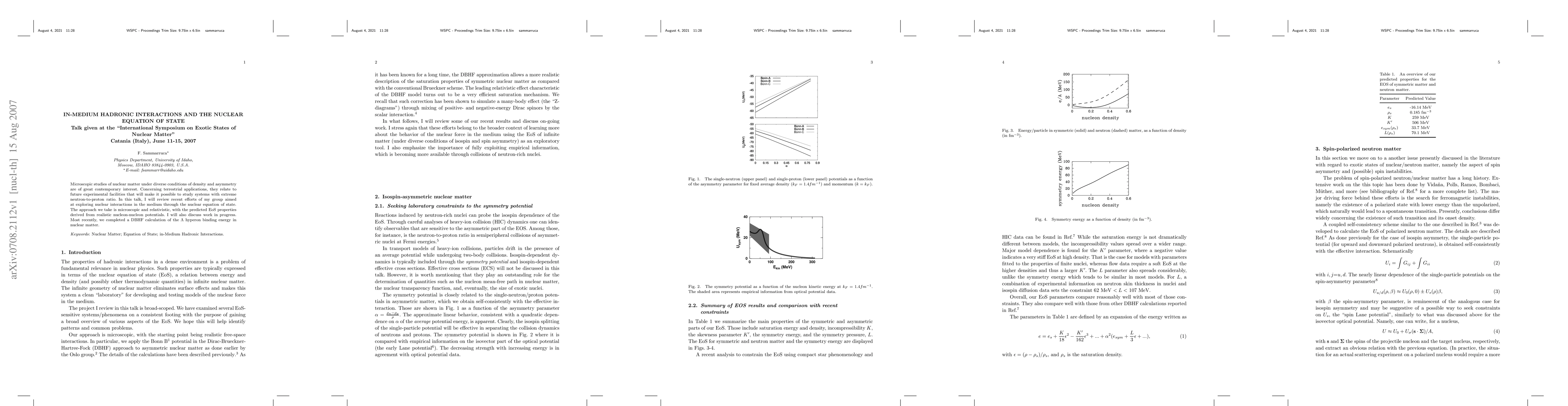 Researchers explored nuclear interactions in extreme conditions using a microscopic approach, predicting properties of the nuclear equation of state with realistic nucleon-nucleon potentials. They successfully calculated the binding energy of the $eta$ hyperon in nuclear matter.