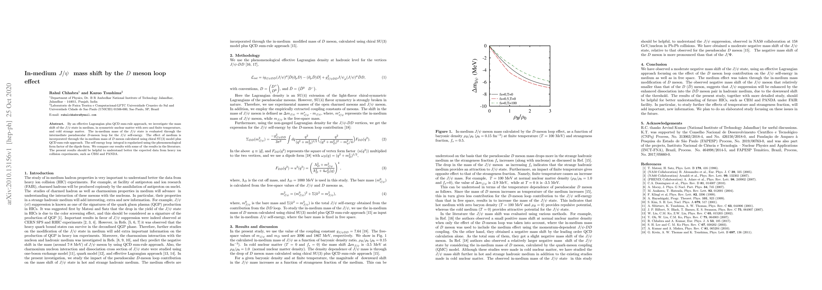 This paper investigates the mass shift of the $J/\psi$ state in various mediums using an effective Lagrangian and QCD sum-rule approach, focusing on the contribution from the $D$ meson loop. The study compares theoretical results with existing literature to enhance understanding of data from heavy ion collision experiments.